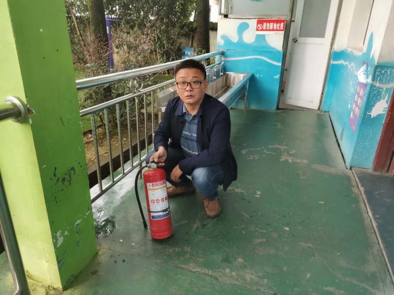9月24日清晨,修山镇党委书记黄军在修山小学门口认真核查校车上的学生人数,同一时间,镇长薛浩在康家村幼儿园仔细查看灭火器的有效日期。
