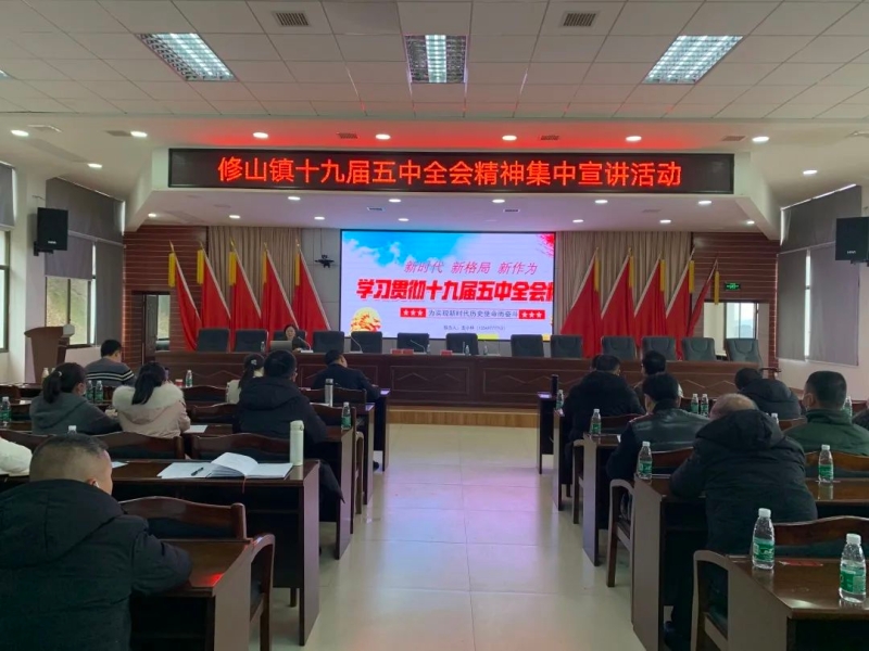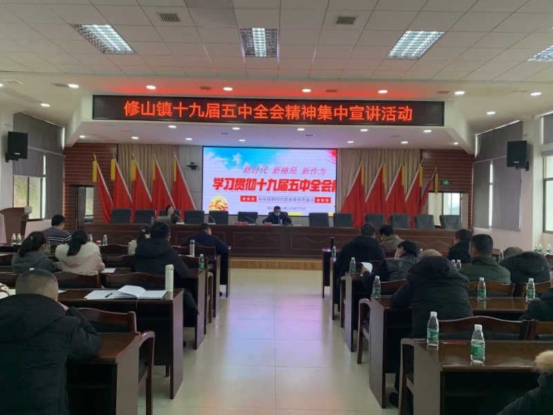 1月22日下午,修山镇组织开展党的十九届五中全会精神宣讲活动。桃江县县委网信办副主任、县委宣讲团成员龙小林作宣讲报告。会议由修山镇党委副书记、镇长薛浩主持,全体机关干职工、各村(社区)党(总)支部书记、镇直部门负责人约100人参与学习。