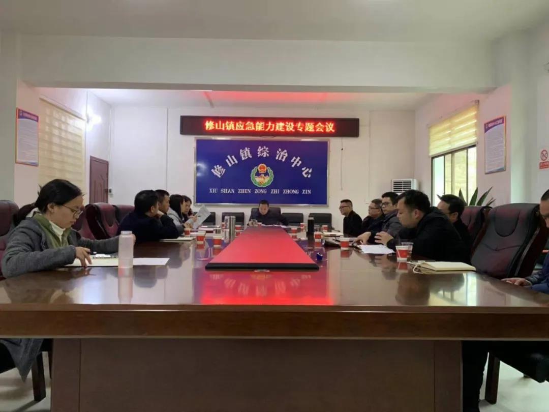 修山镇多次召开班子成员会专题研究应急能力建设相关事项。在应急管理委员会第一次全体会议上,宣布成立以党委书记黄军为第一主任、党委副书记、镇长薛浩为主任,其他党政班子成员、相关单位负责人为成员的应急管理委员会。在应急行动中,书记镇长身先士卒冲在巡检、演练、救援等现场一线进行调度,相关职能部门在各项行动中统一行动、团结协作,圆满完成了各项工作任务。