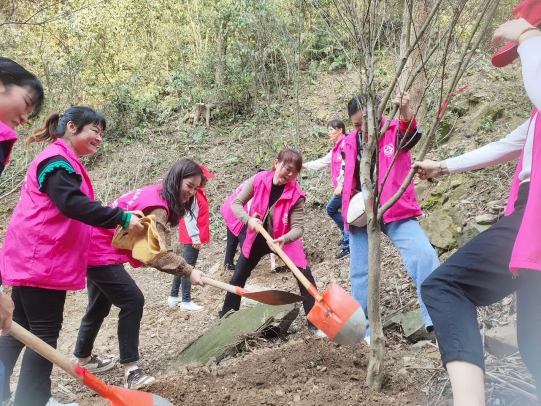 阳春三月,草长莺飞,又是一年植树的好时节。为深入贯彻习近平总书记“绿水青山就是金山银山”理念,提升群众的环境保护意识,在第44个植树节到来之际,修山镇妇联、团委组织机关中青年干职工、各村(社区)妇女主任开展以“行动起来,为羞女山增添一抹绿”为主题的植树活动。