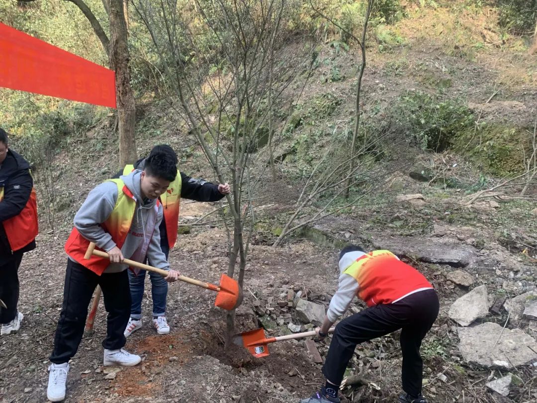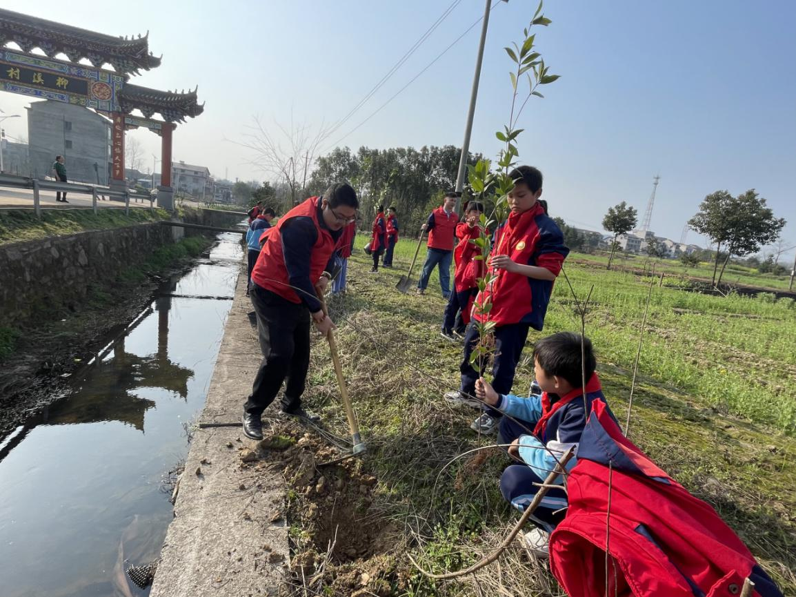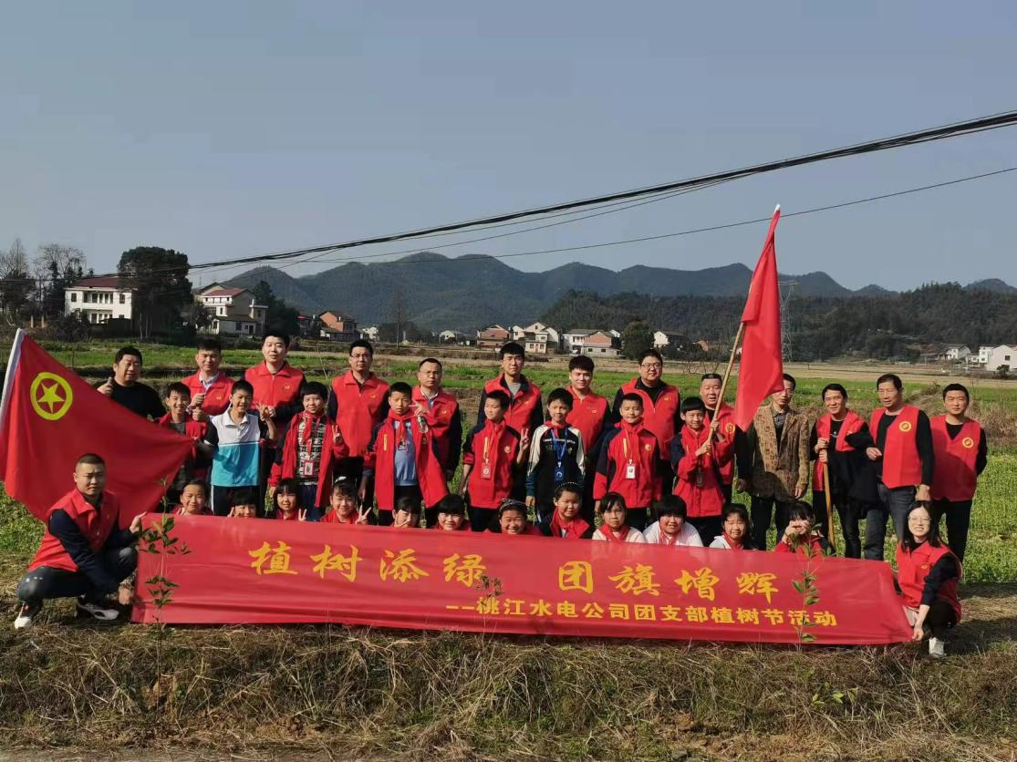 同一时间,桃江水电公司(修山水电站)团员青年积极与修山小学组成志愿者队伍,共同在修山社区开展植树活动。志愿者们扛上工具,和少先队员们带着20棵树苗,健步走向植树区域,在鲜艳的团旗下,三人一组,有的挖坑、有的扶苗、有的浇水,现场繁忙而有序。经过一上午的忙碌,20棵小树苗便“亭亭玉立”在沃土上,大家虽然脚底都是泥土,但眼前这一片新生的春意让大家满心欢喜。