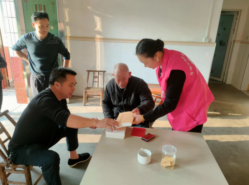 图为花桥港村党支部及驻村工作队看望花桥港村年老体弱党员并赠送主题教育学习资料 王一芳 摄