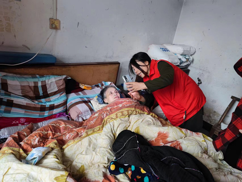 志愿者为老人进行生存认证 骆彬 摄