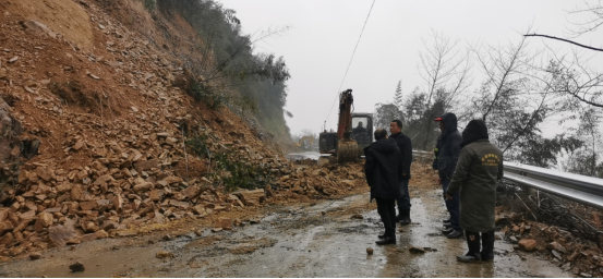 1月29日,受近期强雨雪天气影响,沾溪镇沾溪村沾湖公路文龙岩段突发两处道路边坡塌方。塌方量约2000立方米,大量泥土和树枝堆积在路面,存在安全隐患。沾溪镇政府立即启动应急预案,组织社会治安和应急管理办、自然资源办、交管三中队、和村支两委干部往现场清理塌方。