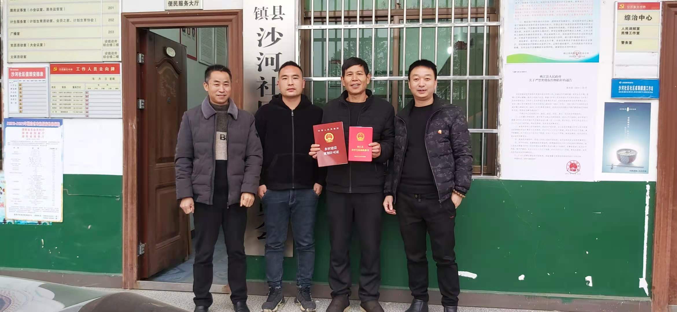图为沙河社区居民领取农村宅基地批准书和规划许可证