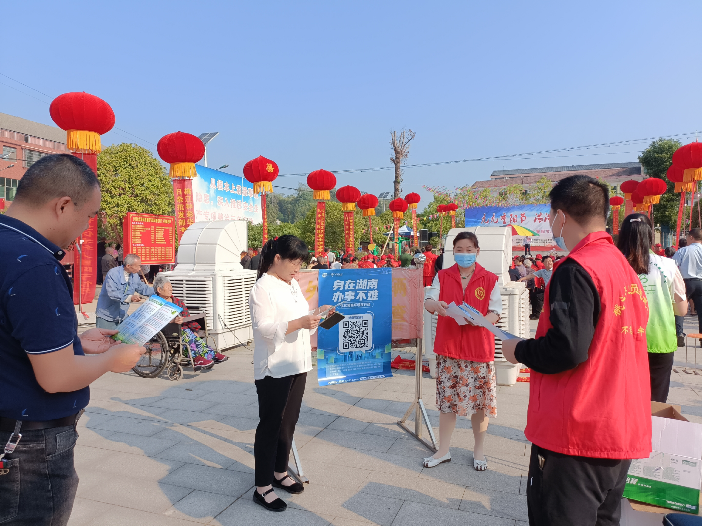 活动中,工作人员通过摆放宣传展板、发放手册、宣传彩页、现场耐心讲解,手把手操作、现场扫码等方式,对便民服务“一件事一次办”、湖南营商码及其他政府服务业务进行了详细介绍和耐心解答,让群众充分感受到了新时代网上办事的方便与快捷。