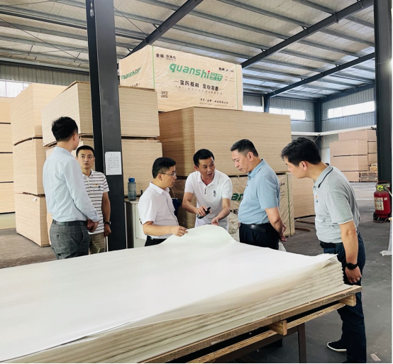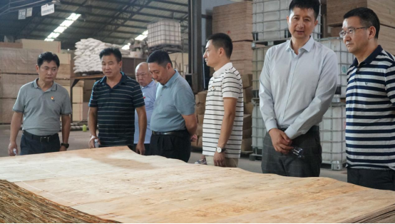 在福森木业、宏森木业,调研组认真听取了有关情况介绍,察看了企业的一线生产情况,重点就鲊埠回族乡做大做强细木工板产业,依托优质资源,以产业兴旺带动乡村振兴等进行了探讨和交流。