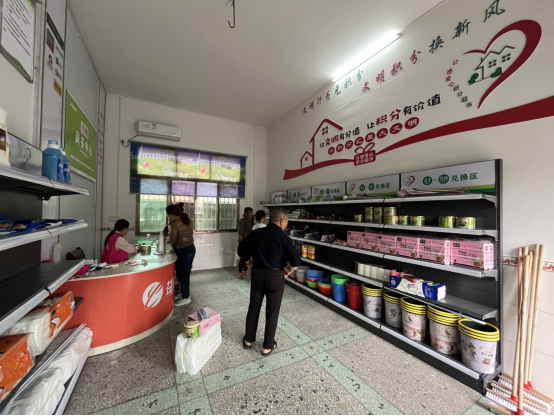 军功嘴村于2022年下半年设立了此“公德爱心积分超市”,给全村在村生活家庭每户设一个积分账号,群众可通过参加集体安排的义务劳动、集体活动、环境卫生评比、表彰奖励等获得积分,获得的积分可以到村便民服务中心的“超市”兑换对等的商品。