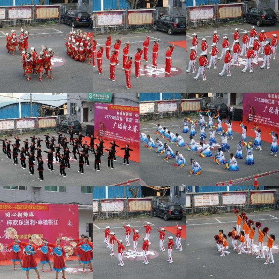 比赛在舞蹈《我在茶乡等你来》中正式拉开序幕,随后《不放弃》《快乐草原》《中华全家福》《母亲是中华》《没有共产党就没有新中国》《大中国》《云底人间》等节目轮番登台,来自全乡的8支队伍精神抖擞、队形整齐、服饰优美、各具特色。伴随着不同风格的音乐,100多名选手用饱满的热情、动人的舞姿谱写了一篇篇对党和祖国的赞歌,对美好生活的热爱与向往,为观众献上了一场场精彩纷呈的演出,博得现场观众阵阵热烈地掌声。现场人声鼎沸、舞步欢腾。