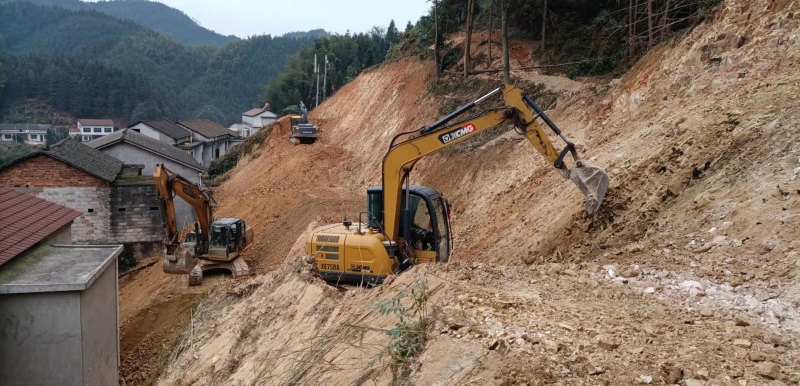 11月19日,马迹塘镇易家坊村雷五组滑坡地质灾害治理施工现场一派繁忙,挖掘机轰鸣、岩体加固及护脚挡墙作业区正紧张施工。