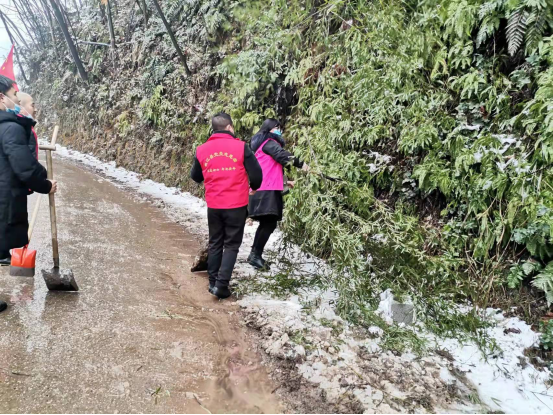 2月7日,虎年开工第一天,马迹塘镇迎来一场大雪,给广大群众的生活、出行带来不便。马迹塘镇迅速应对,组织镇村干部、党员志愿者等200余人对镇域内重点路段扫雪除冰、清理倒伏竹子路障,并安排交通安全劝导员和志愿者在主要风险路段执勤值守,确保道路交通安全。此外,还利用微信、广播、敲门入户等形式提醒居民做好防寒防冻措施,注意消防安全。