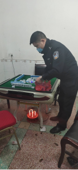 行动组人员迅速集合开展突击行动,在该村民家中查处正在进行的两桌麻将牌局,聚众打牌的多名群众均未佩戴口罩。行动组对该户主和聚众人群进行了严肃的批评教育,并销毁麻将机两台、没收处理麻将4副。