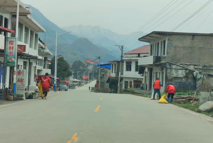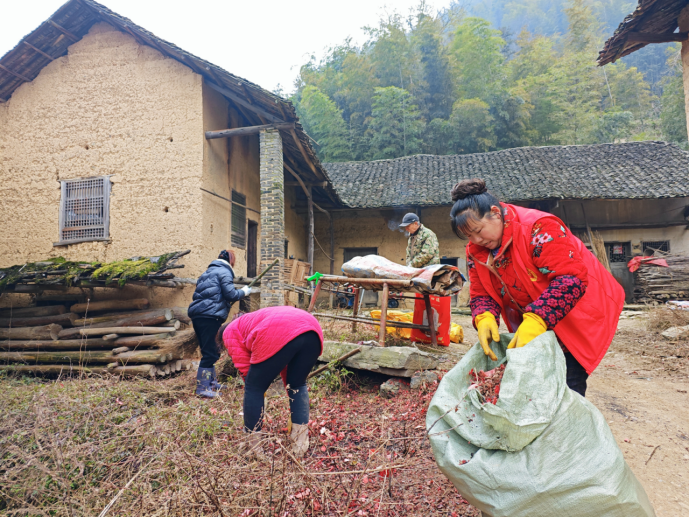 村(社区)志愿者清理房前屋后垃圾 彭婧琦 摄