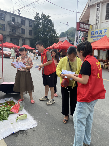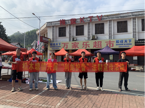 8月21日上午,松木塘镇综治办、镇妇联联合开展大学生普法志愿者送法下乡宣传活动。
