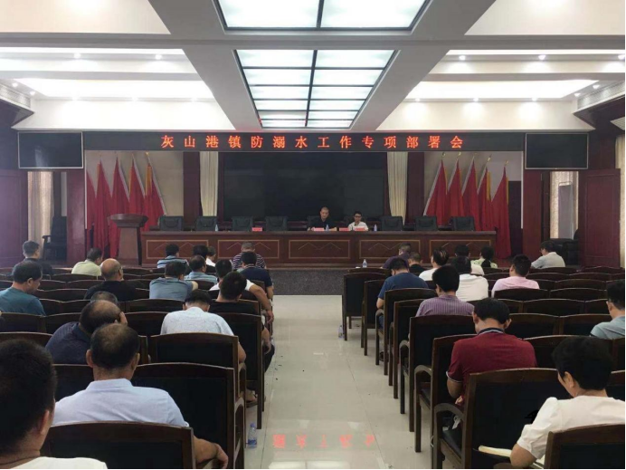 图为党委副书记、镇长曾小平主持召开防溺水工作专项部署会