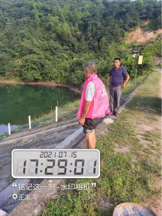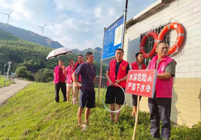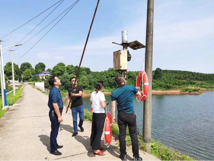 图为镇村两级干部、妇联执委对山塘水库开展巡查