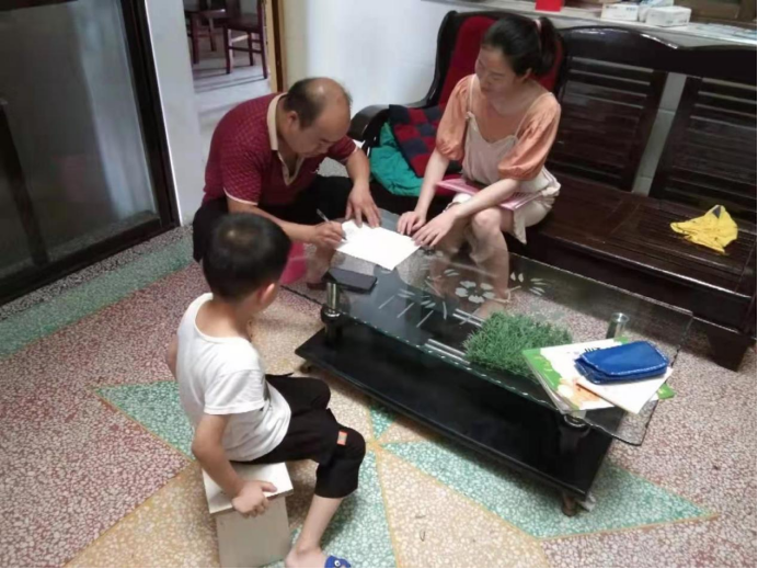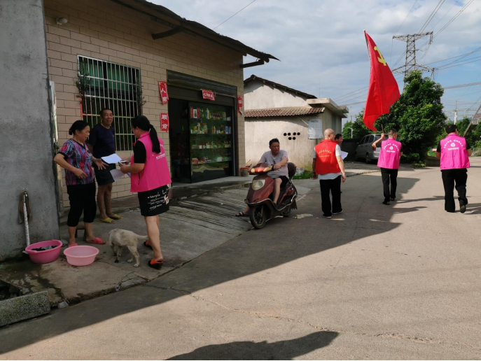 图为党员组长、网格员等上门宣传,发放宣传资料