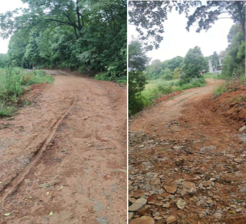 2021年8月初,苏家冲乡村公路硬化建设正式动工,修路沿、垫路基、加宽道路,镇、村两级干部带领着村民干得热火朝天。有些路段路基窄,要填泥拓宽路面,村民主动提出无偿让出部分土地,大家有钱出钱、有力出力,在大伙儿的齐心合力下,路基平整、涵管铺设、公路硬化仅用了四天时间,一条3米宽的水泥道路竣工了。