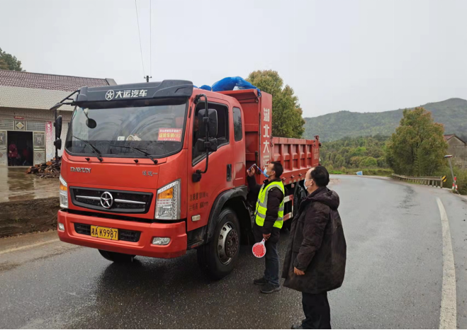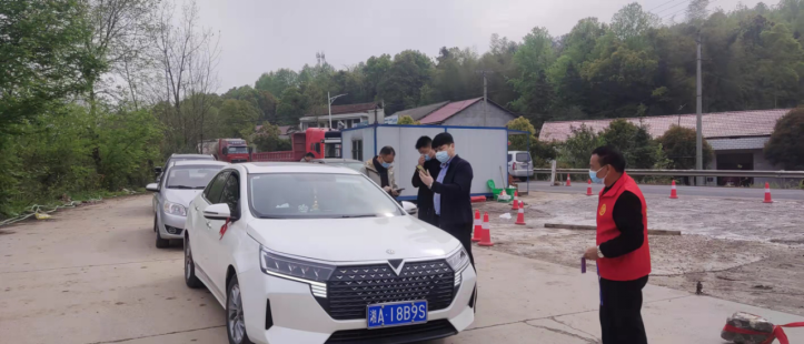 图:灰山港镇副镇长吴国春组织党支部成员、志愿者在河冲村马劲坳疫情防控健康服务站对过往车辆进行场所码、核酸等查验。