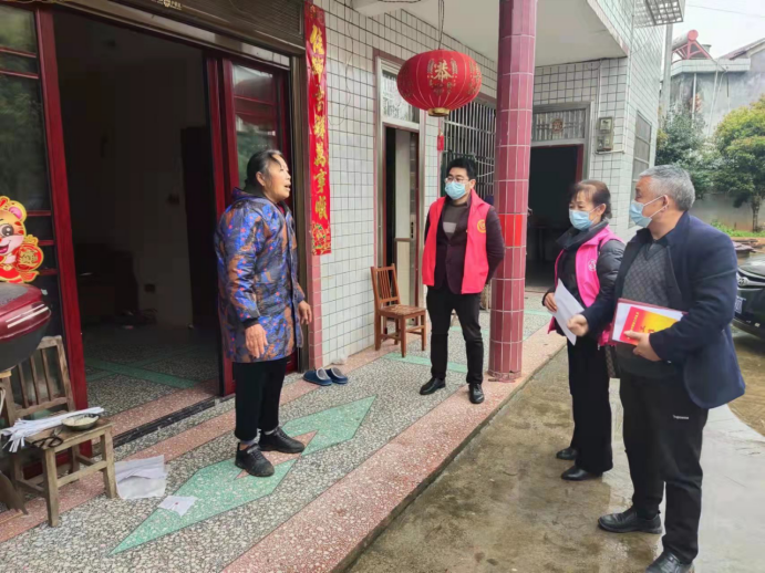 图:灰山港镇、村干部开展敲门行动,宣传防疫宣传和返乡人员入户排查。