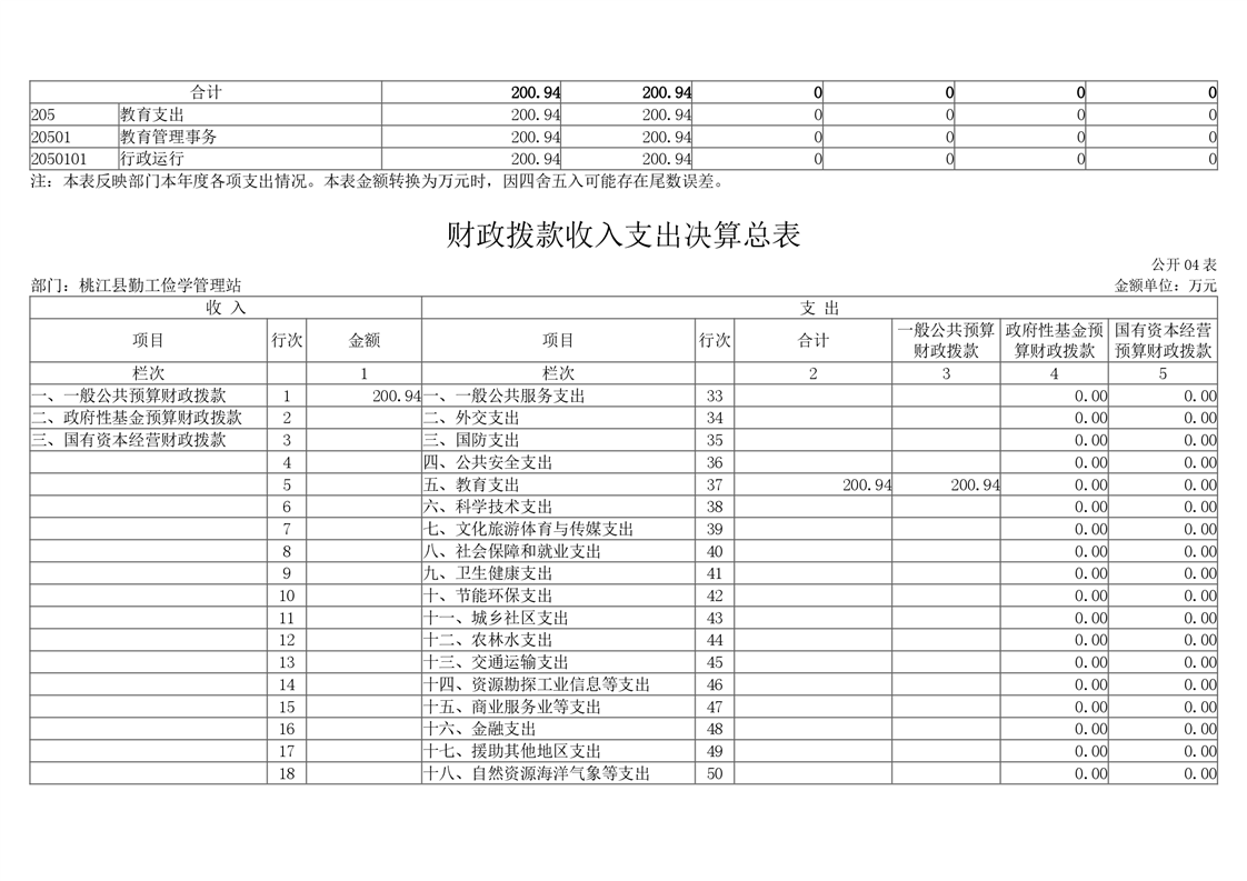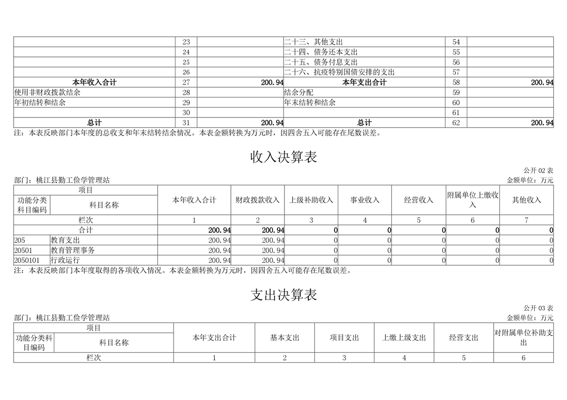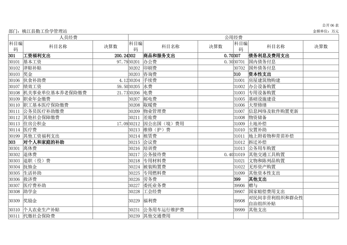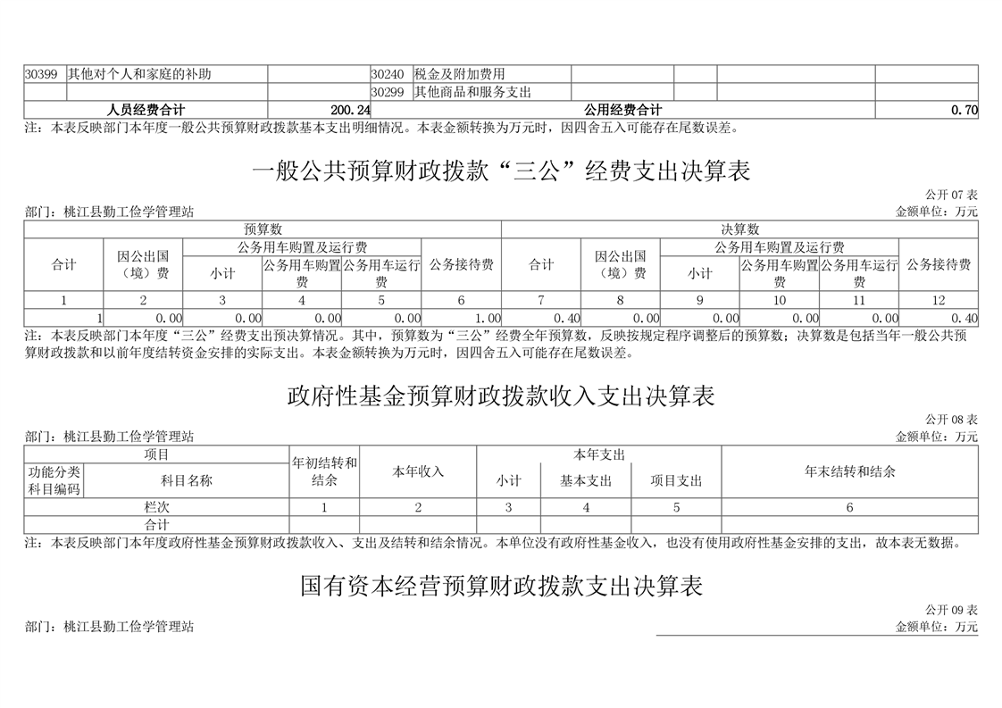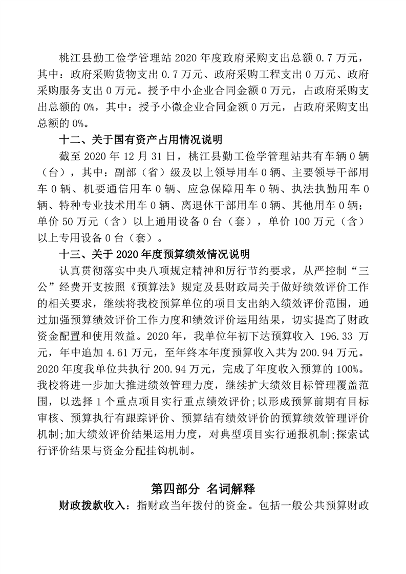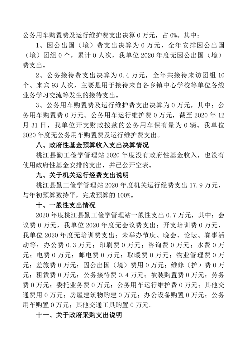 桃江县勤工俭学管理站2020年度部门决算公开说明.