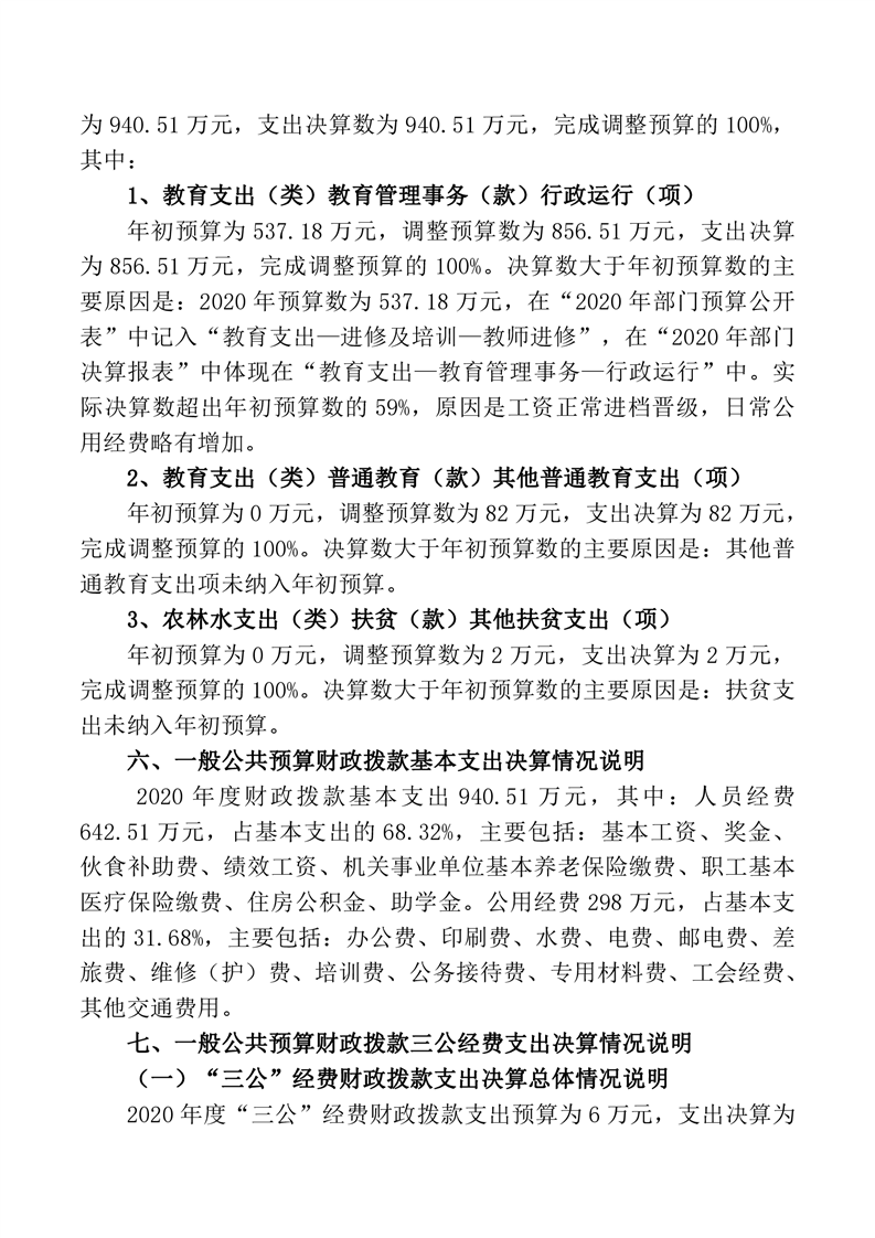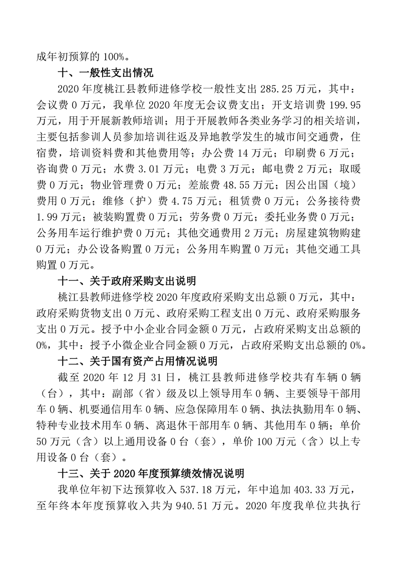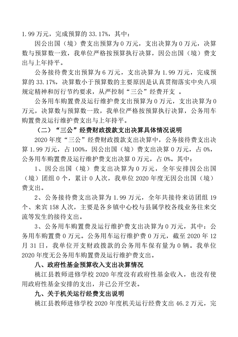 桃江县教师进修学校2020年度部门决算公开说明.