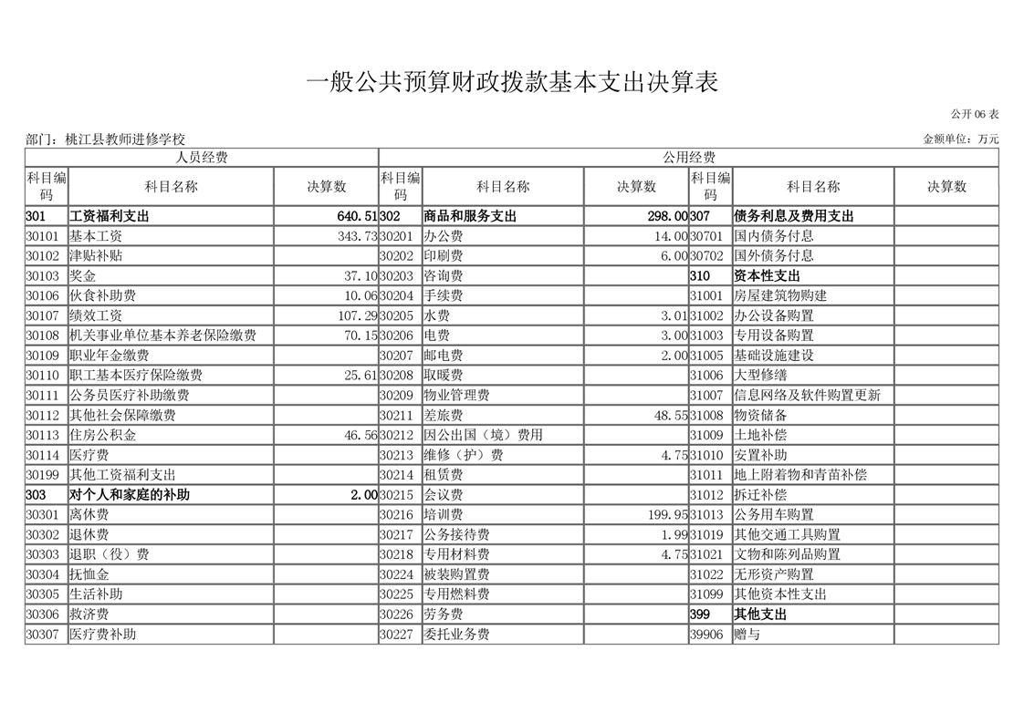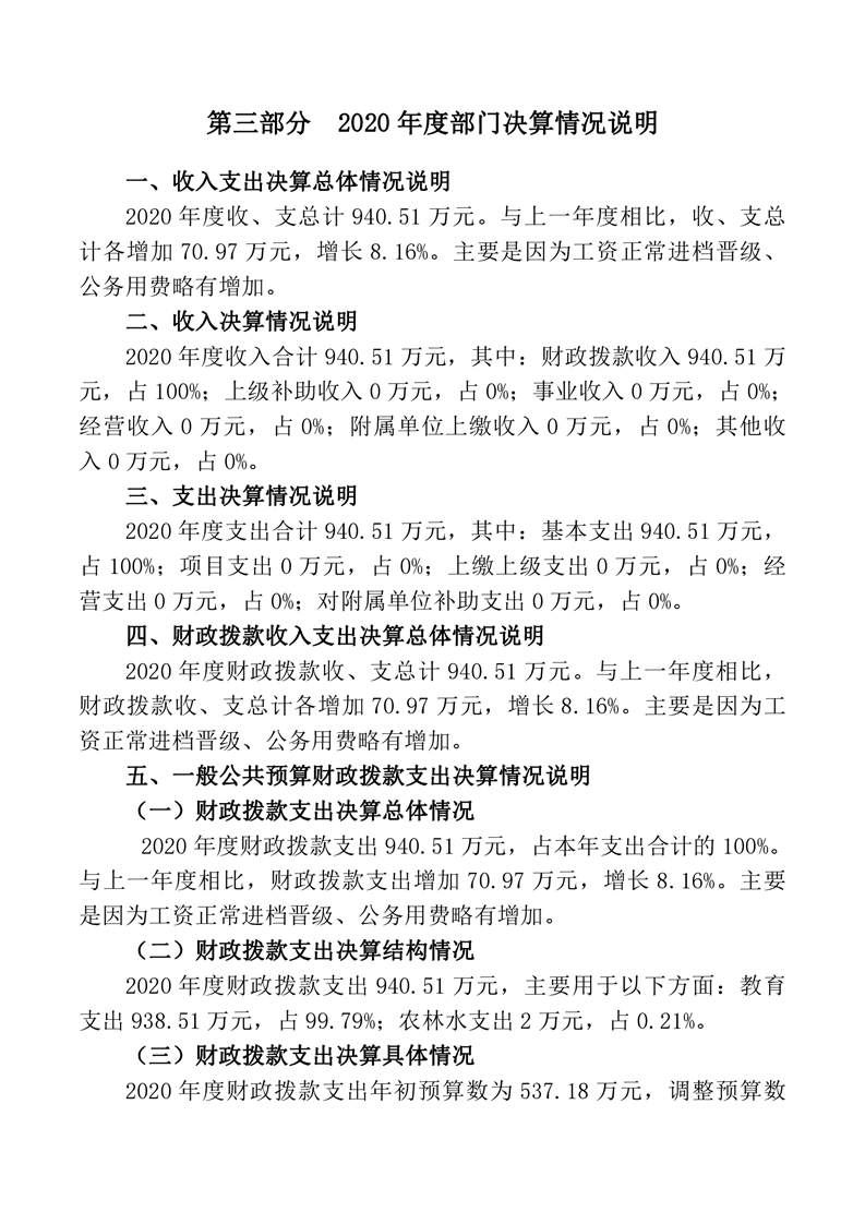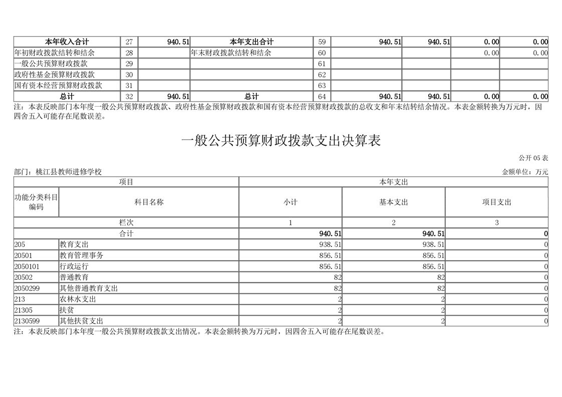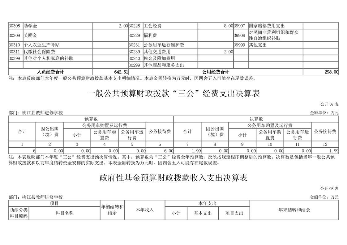 桃江县教师进修学校2020年度部门决算公开说明.