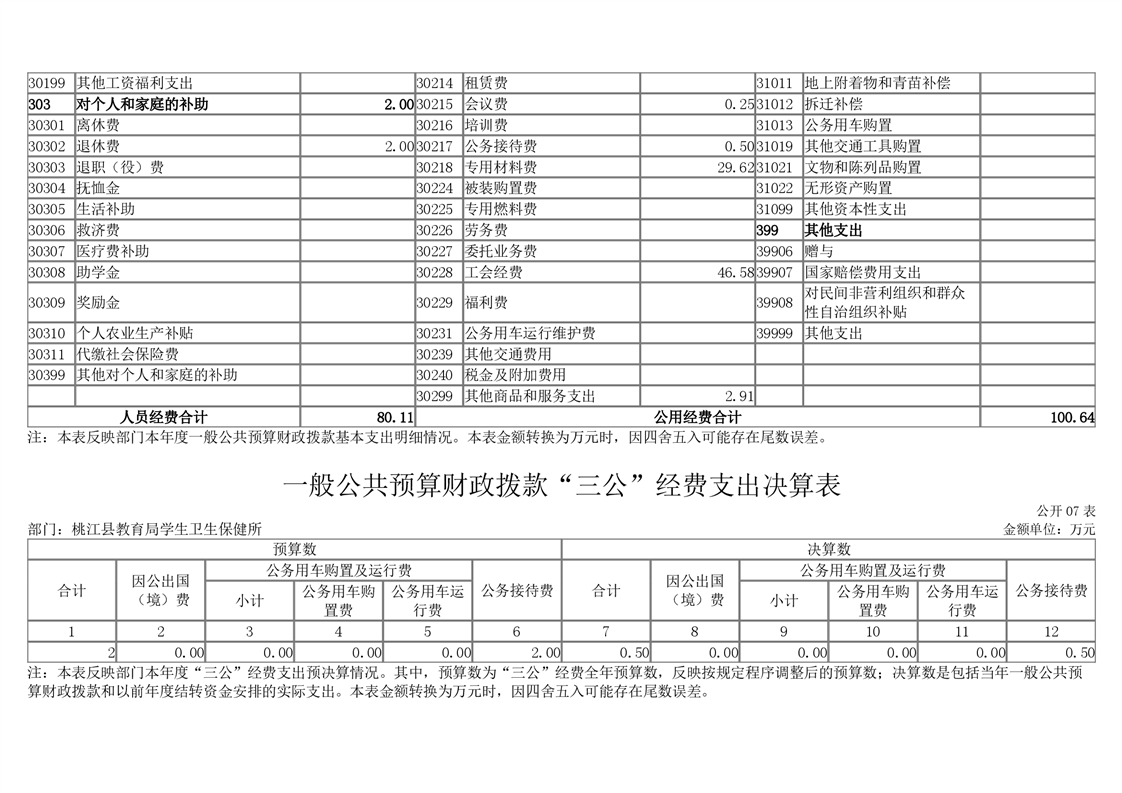 桃江县教育局学生卫生保健所2020年度部门决算公开说明.