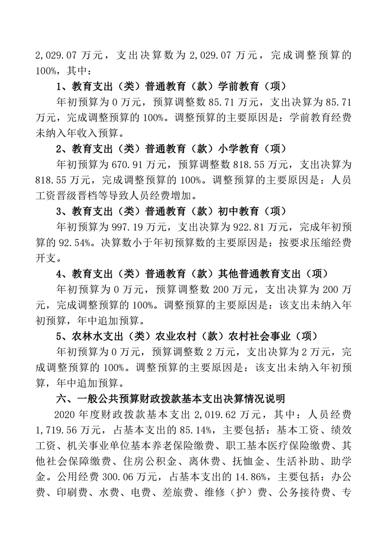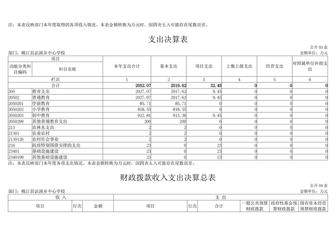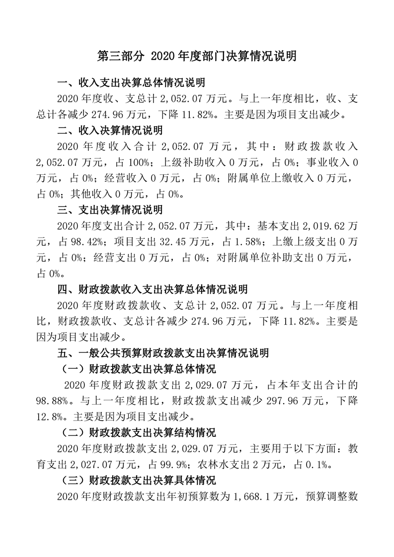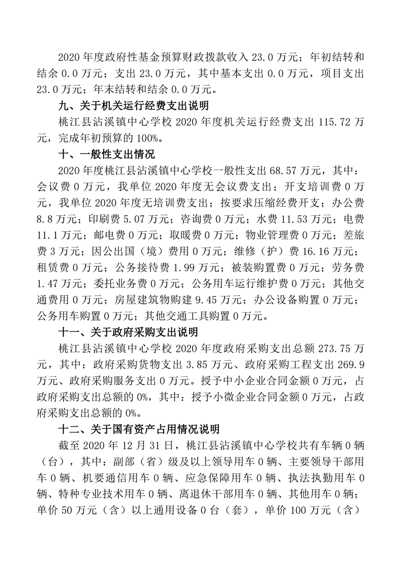 桃江县沾溪镇中心学校2020年度部门决算公开说明.