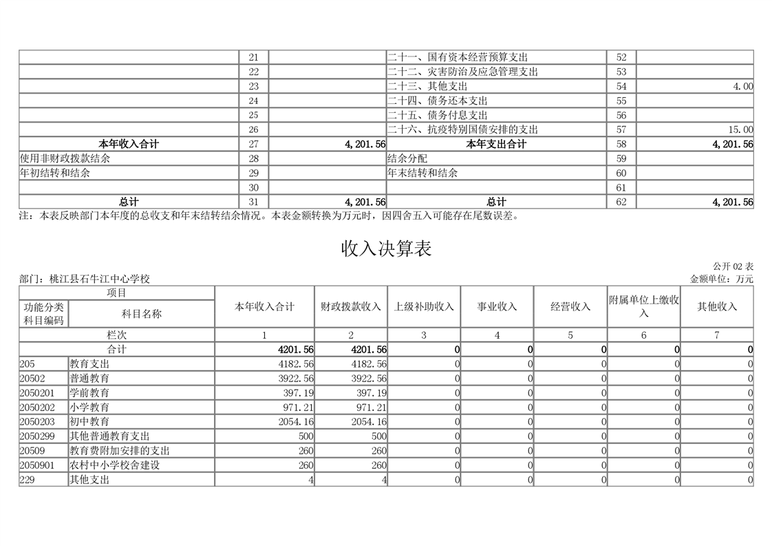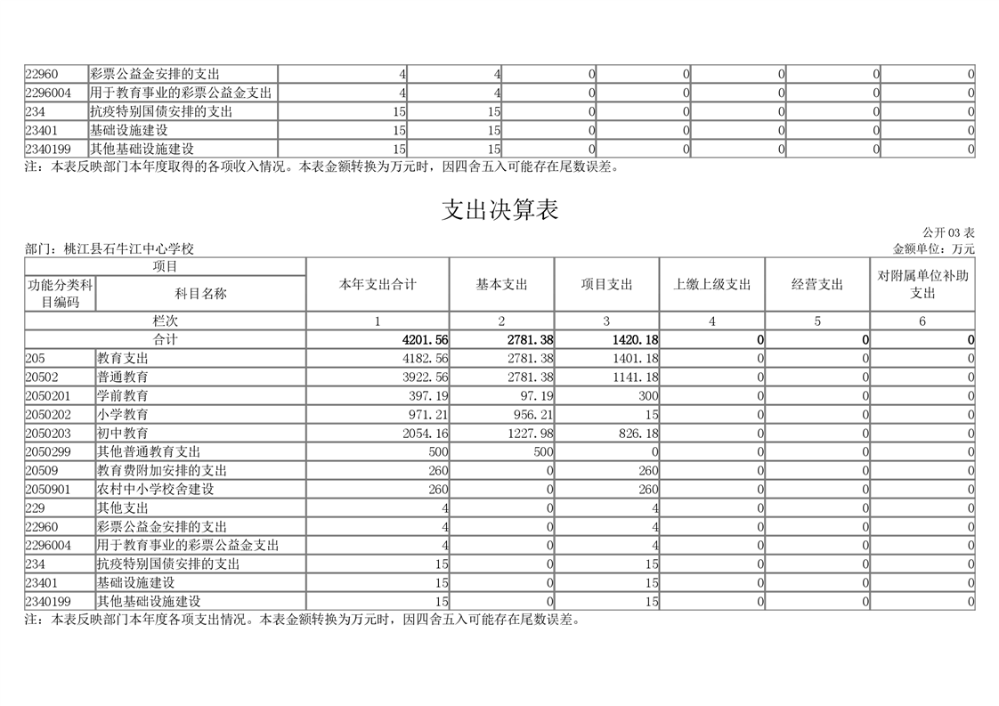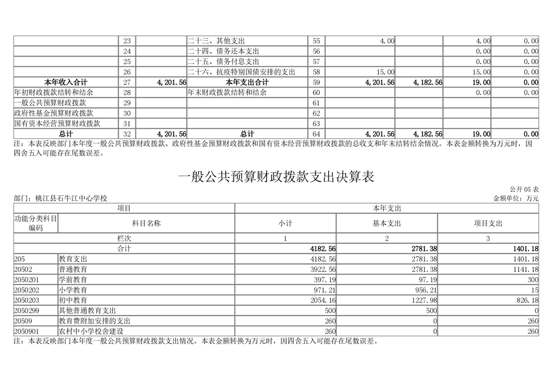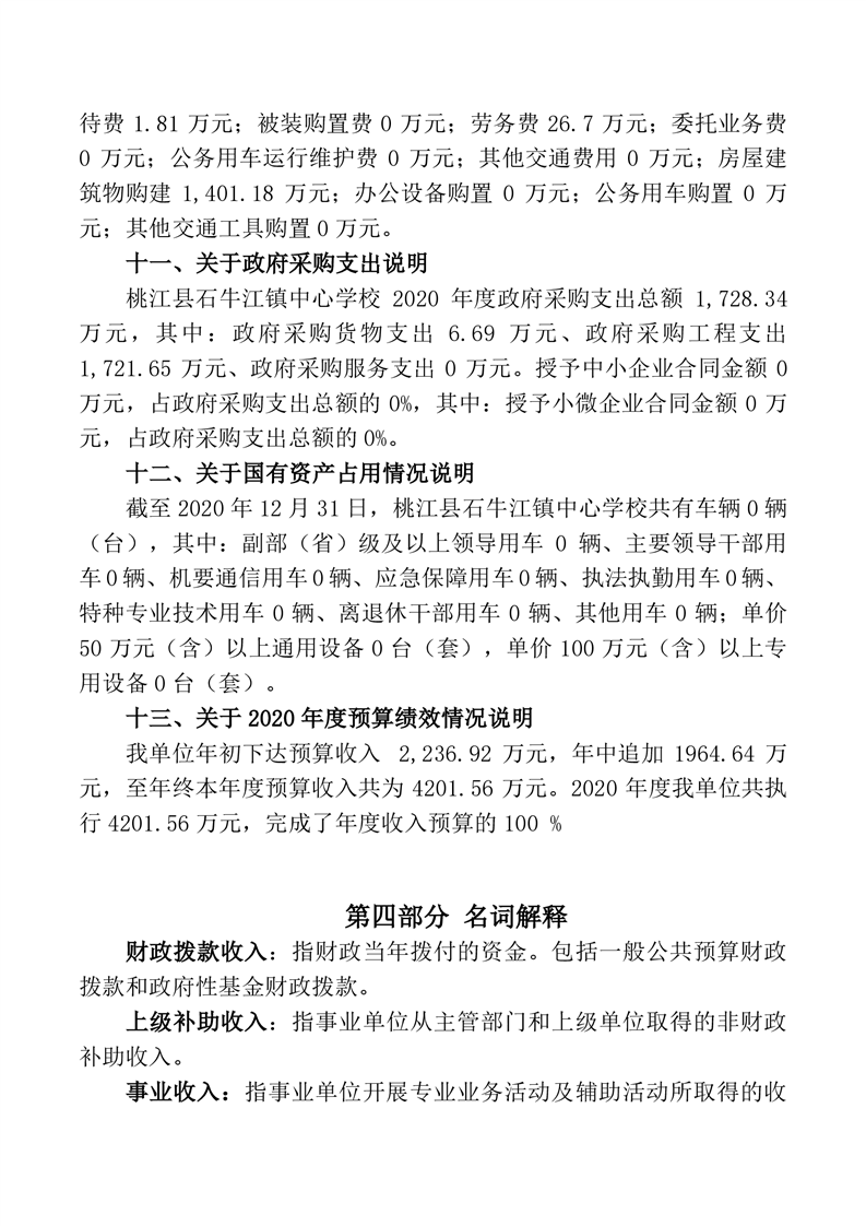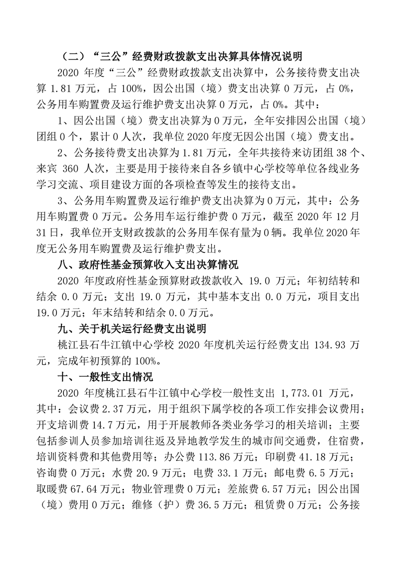 桃江县石牛江镇中心学校2020年度部门决算公开说明