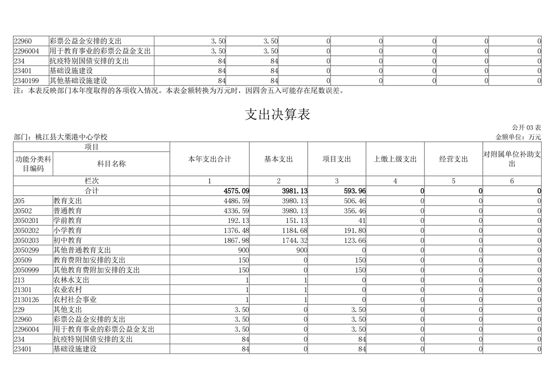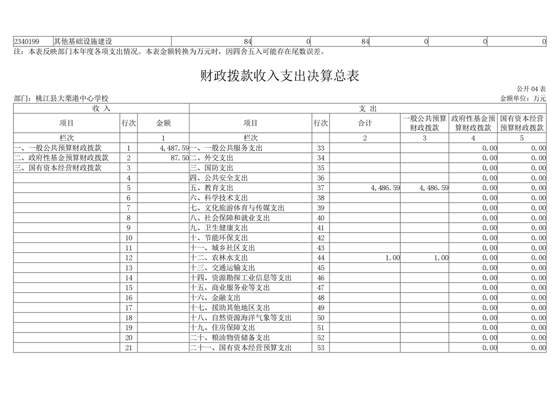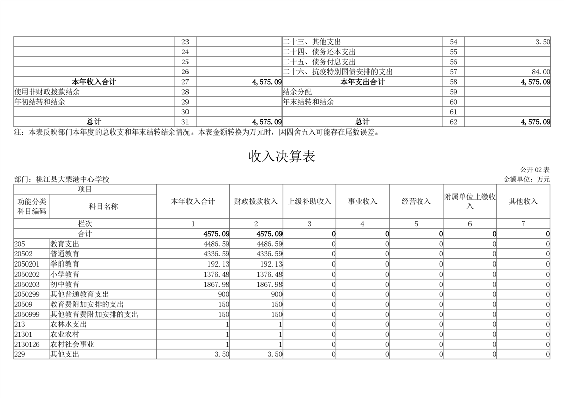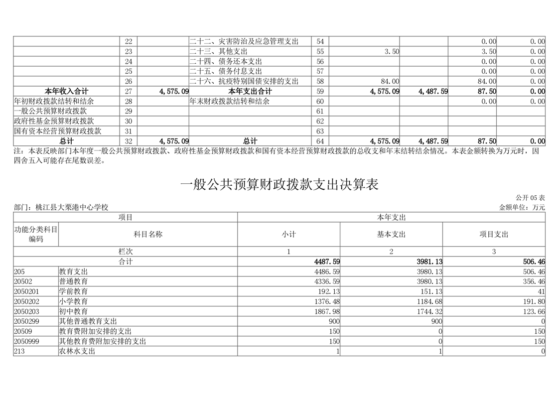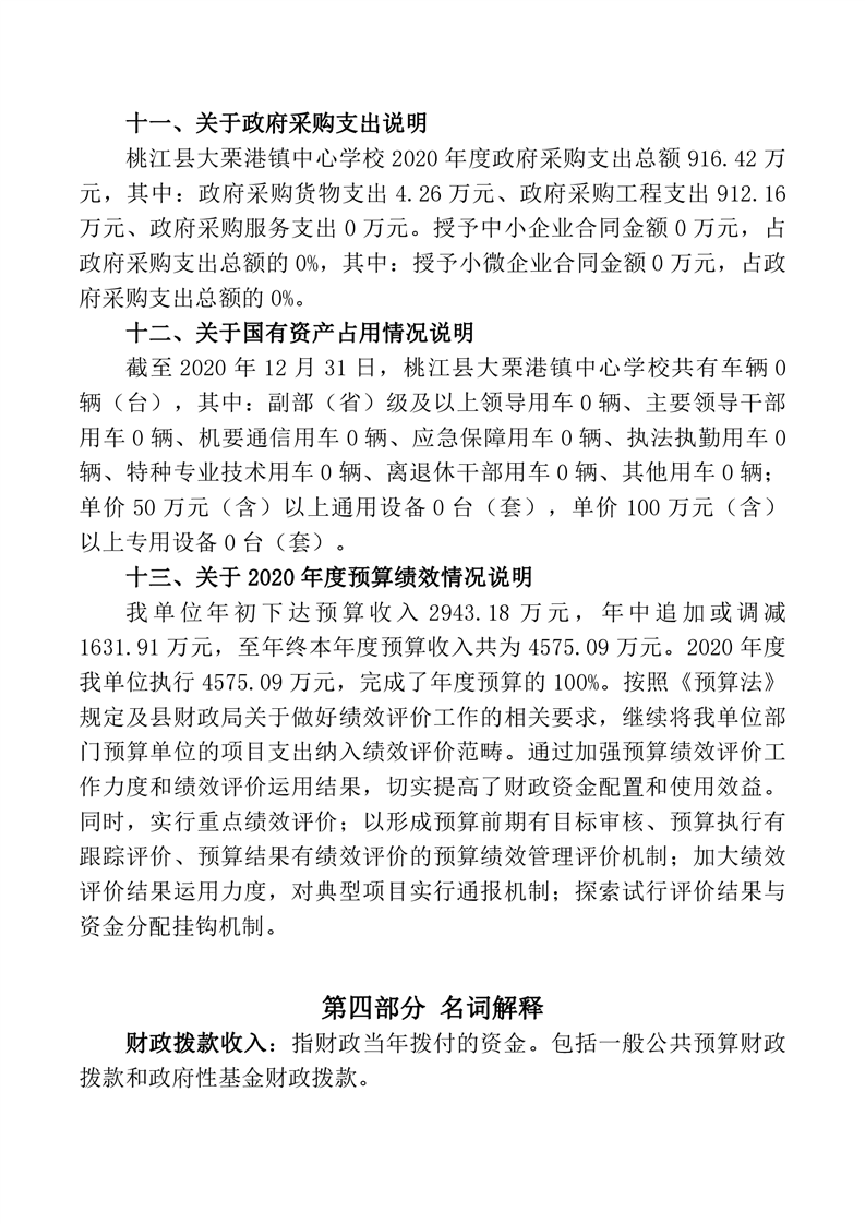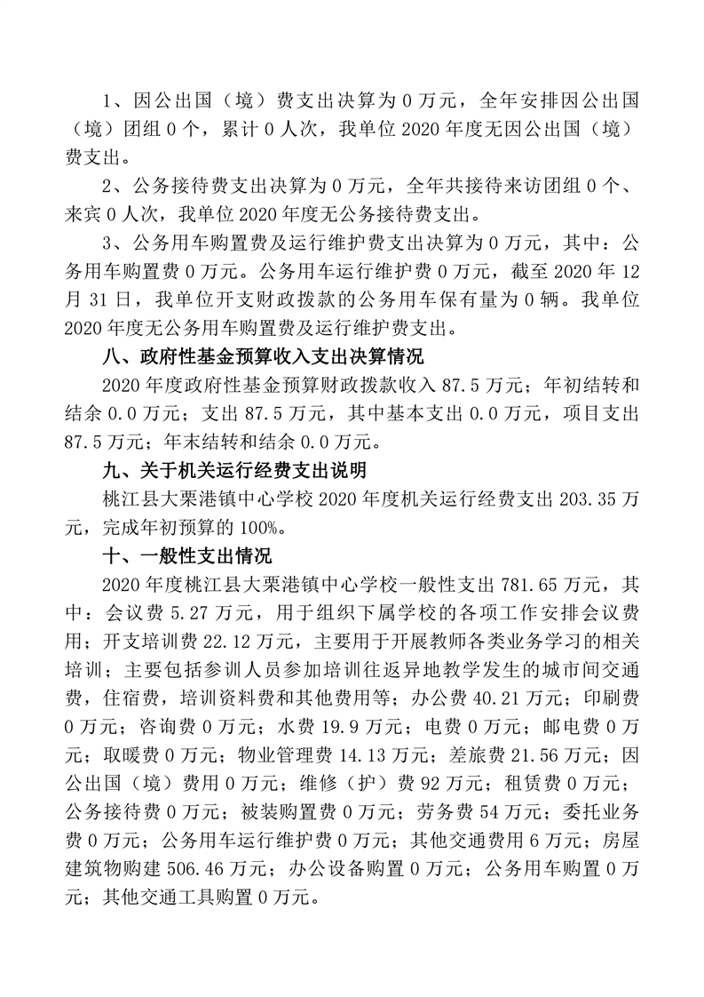 桃江县大栗港中心学校2020年度部门决算公开说明.