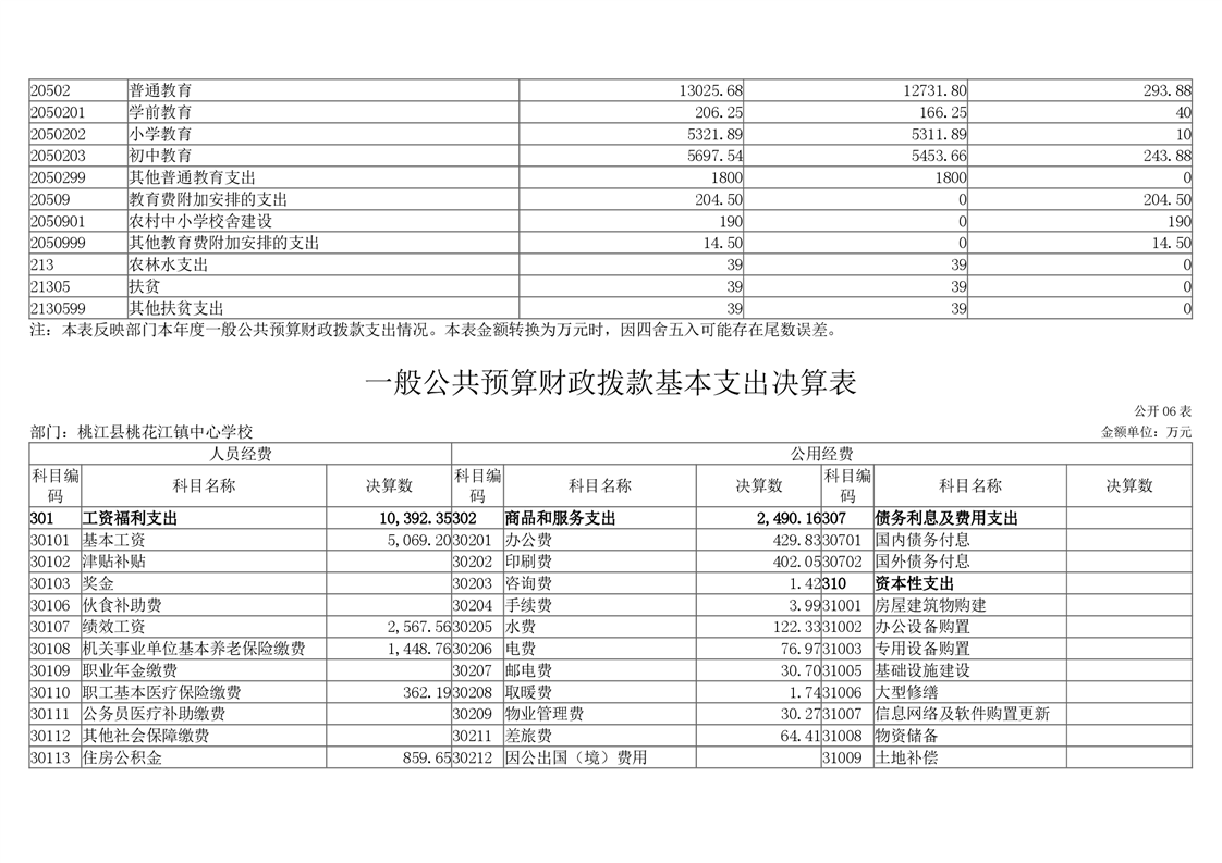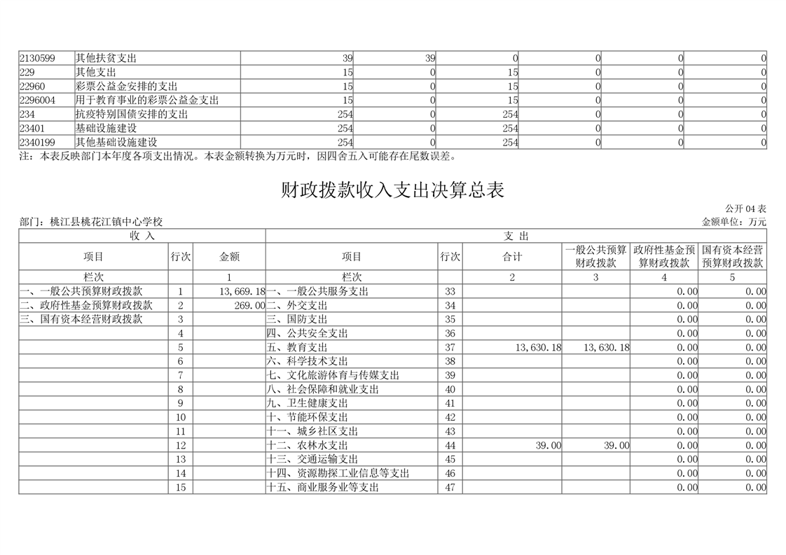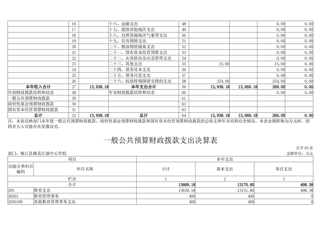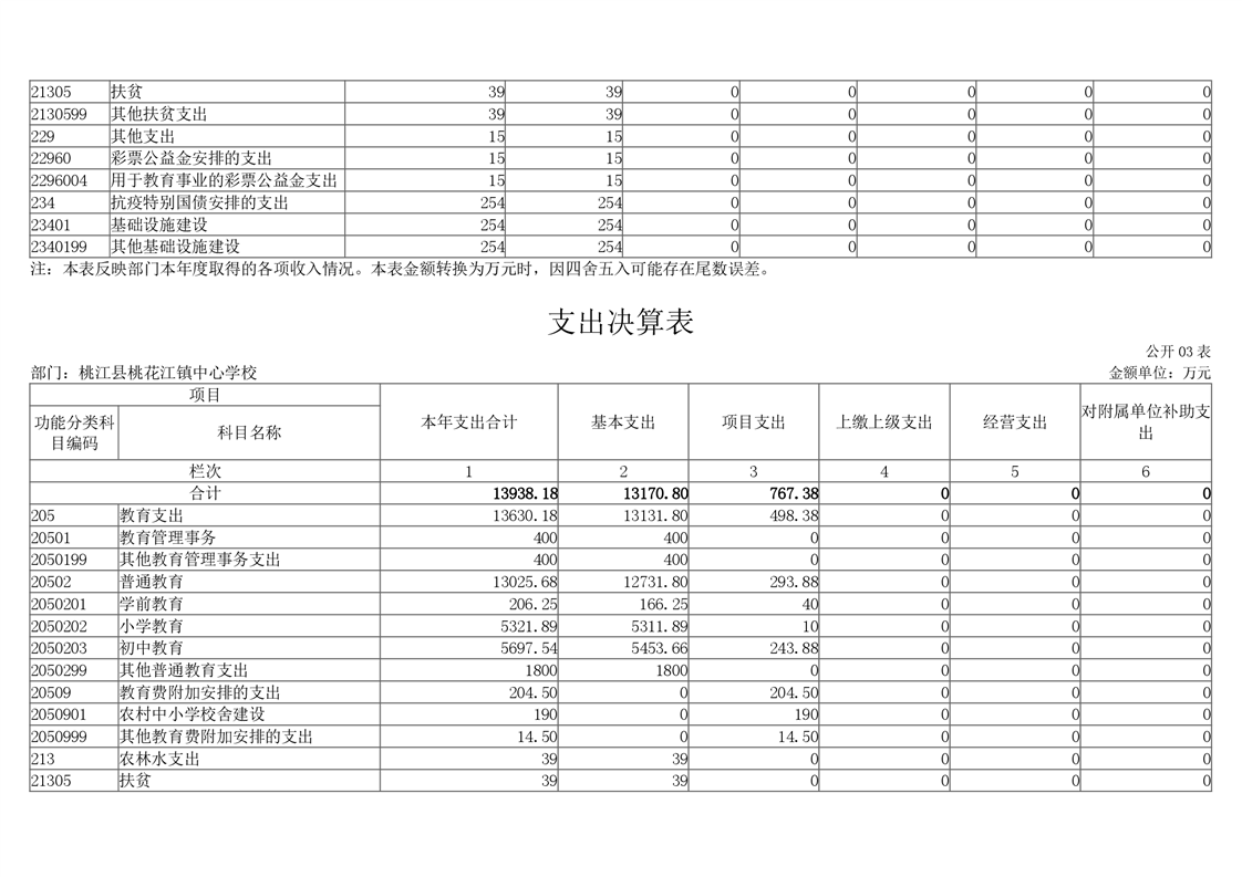 桃江县桃花江镇中心学校2020年度部门决算公开说明.