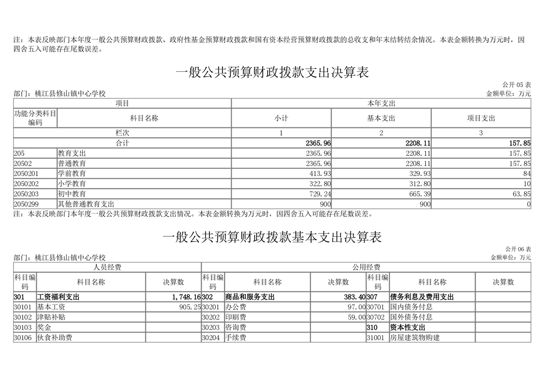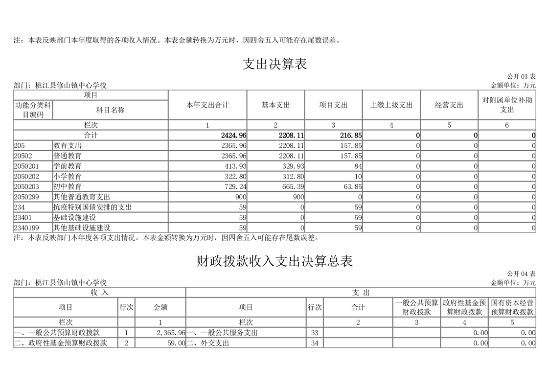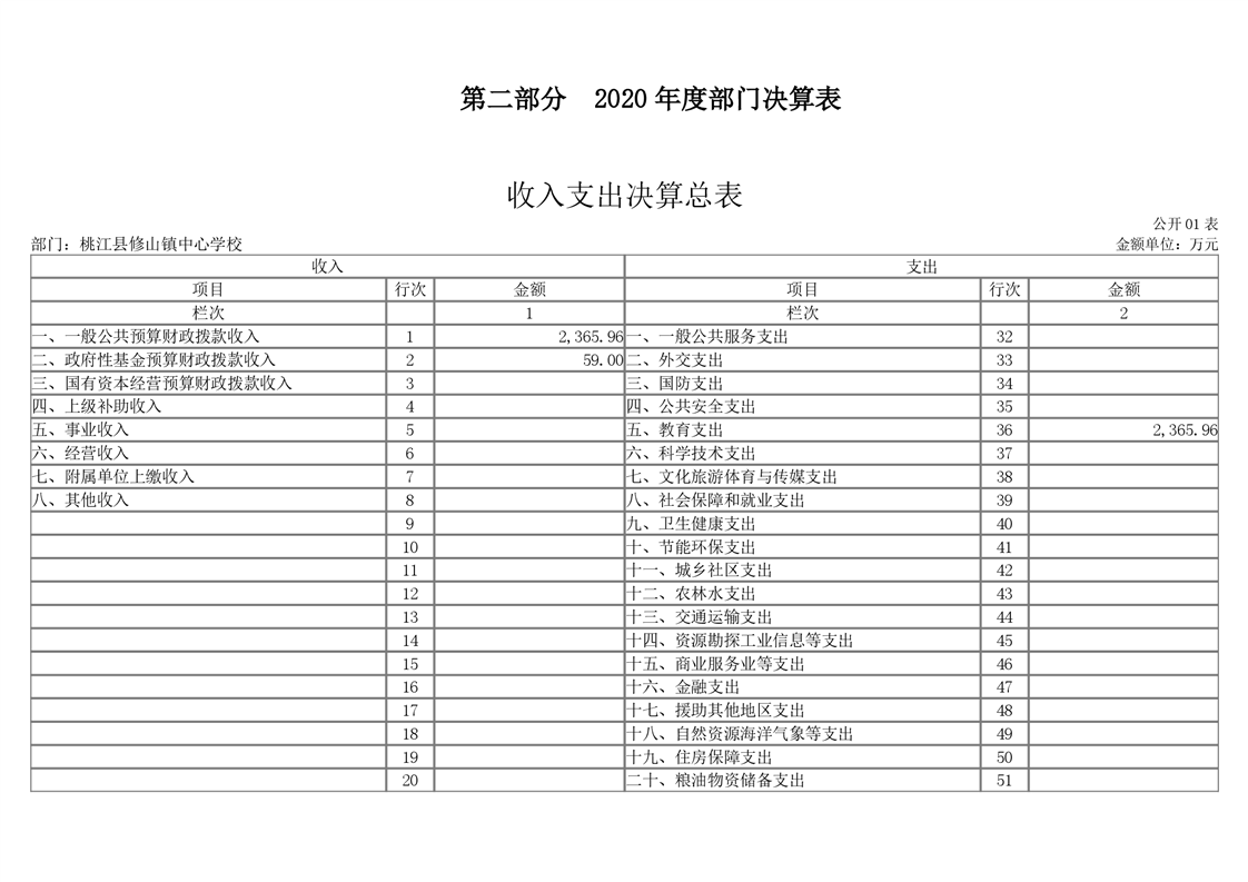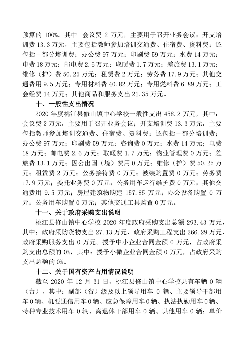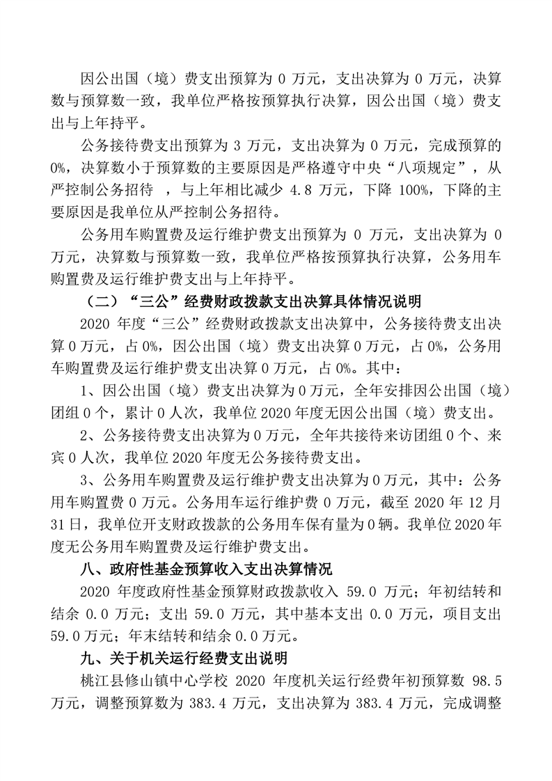 桃江县修山镇中心学校_2020年度部门决算公开说明.