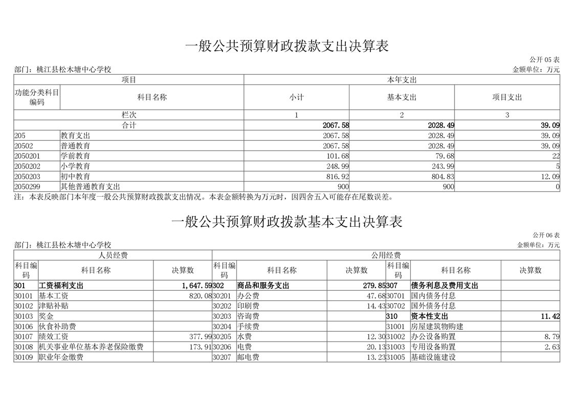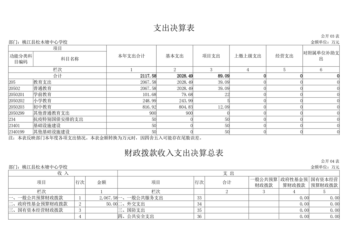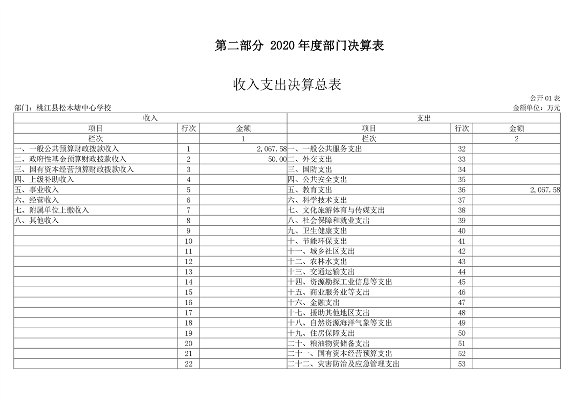 桃江县松木塘中心学校2020年度部门决算公开说明.