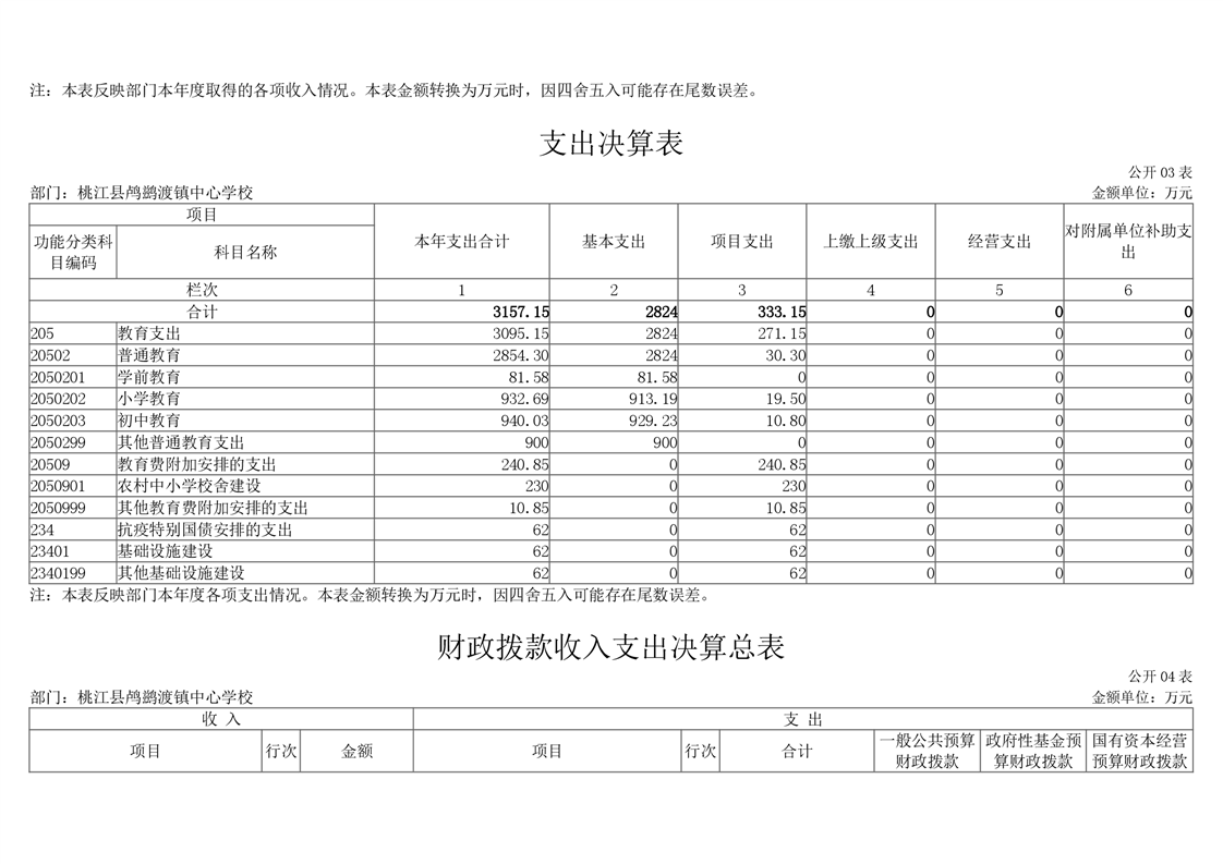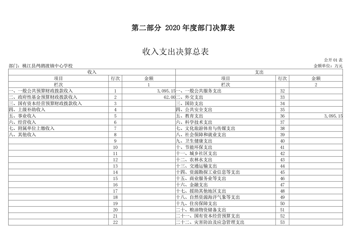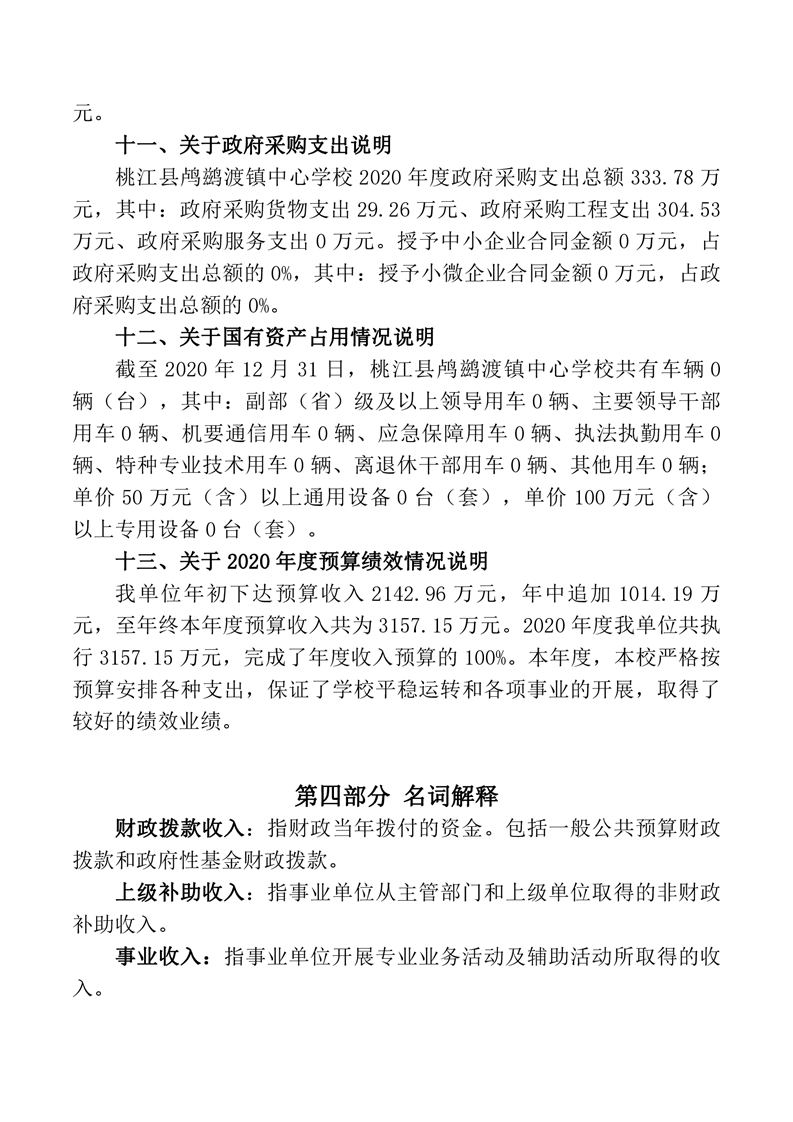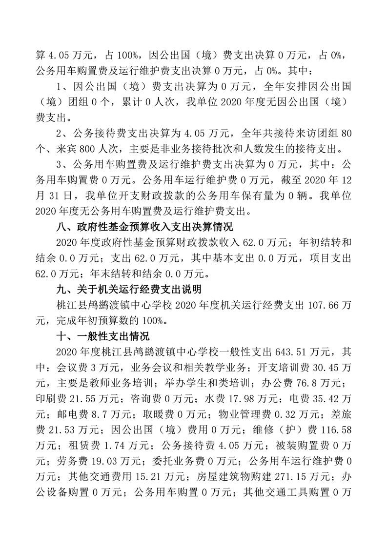 桃江县鸬鹚渡镇中心学校2020年度部门决算公开说明.