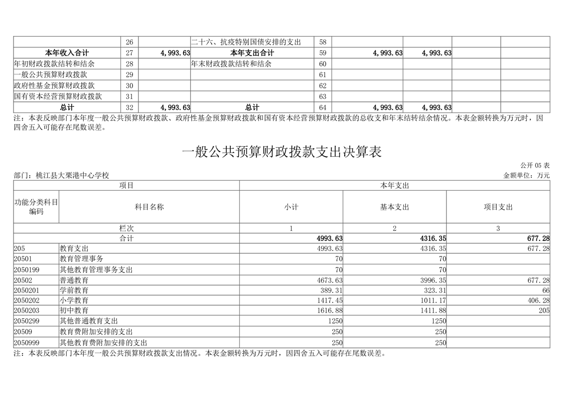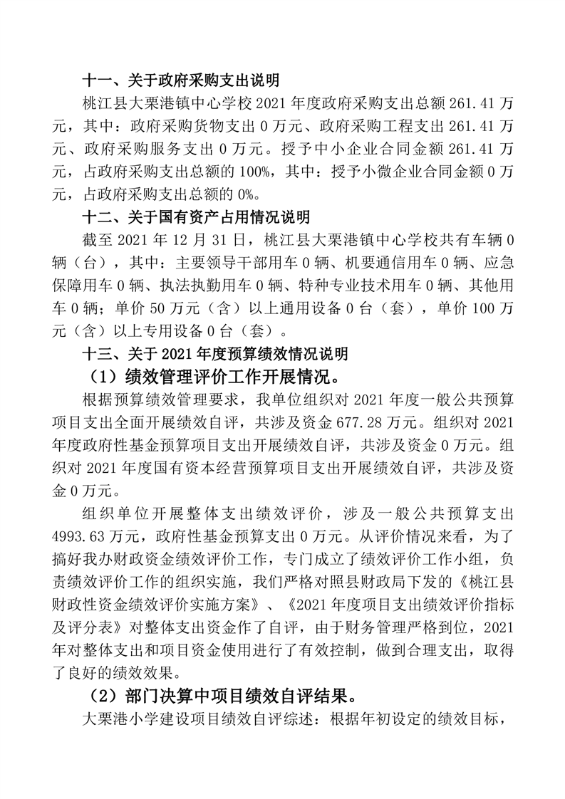 2021年度桃江县大栗港镇中心学校部门决算公开