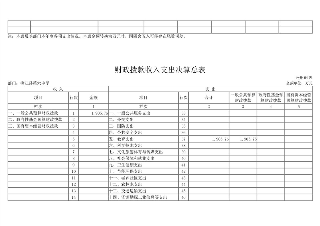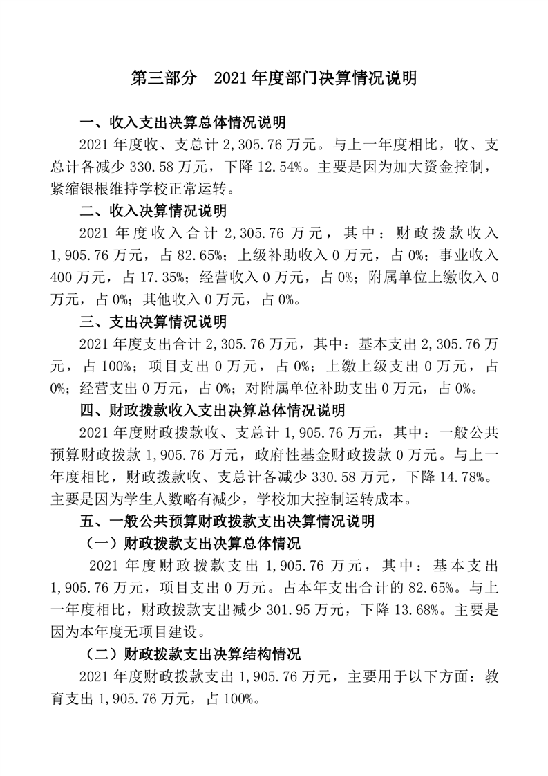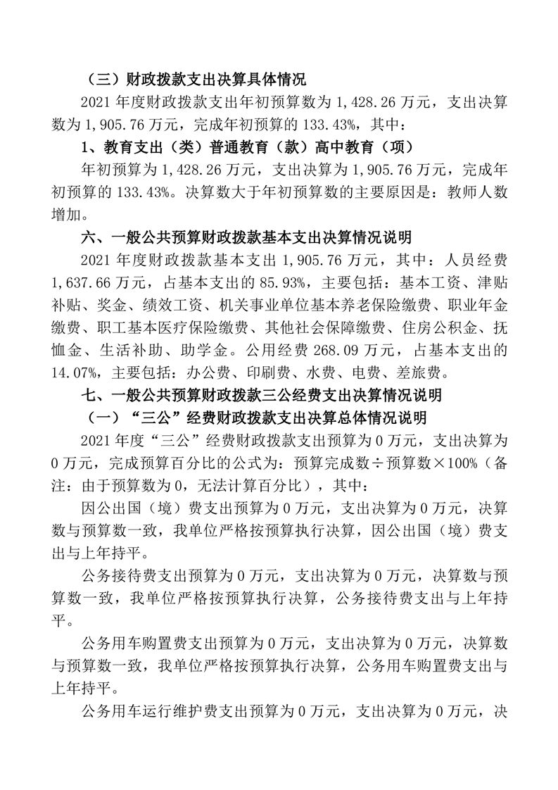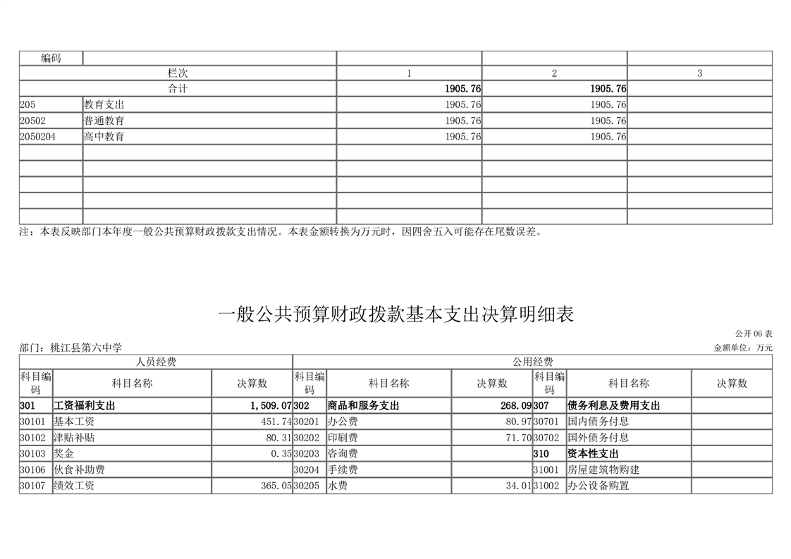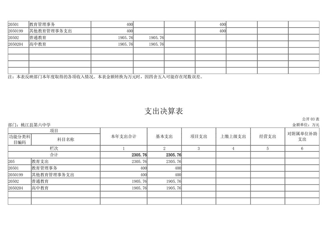 桃江县第六中学2021年部门决算公开
