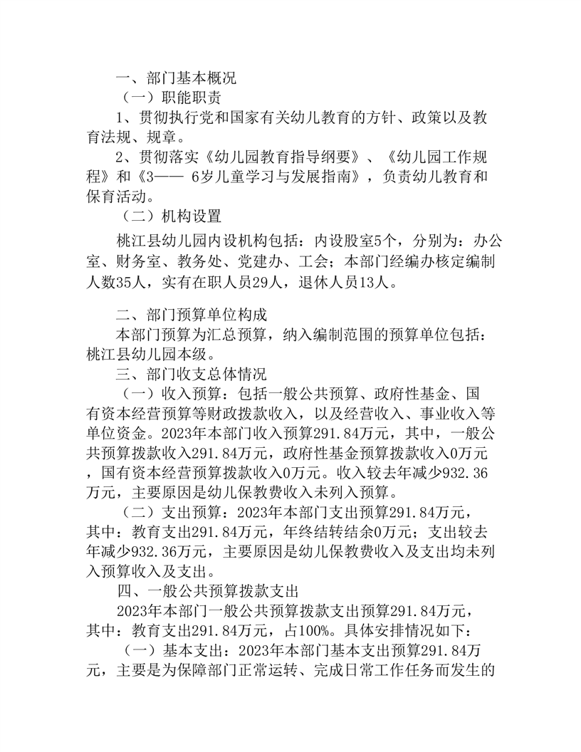 桃江县幼儿园2023年部门预算公开