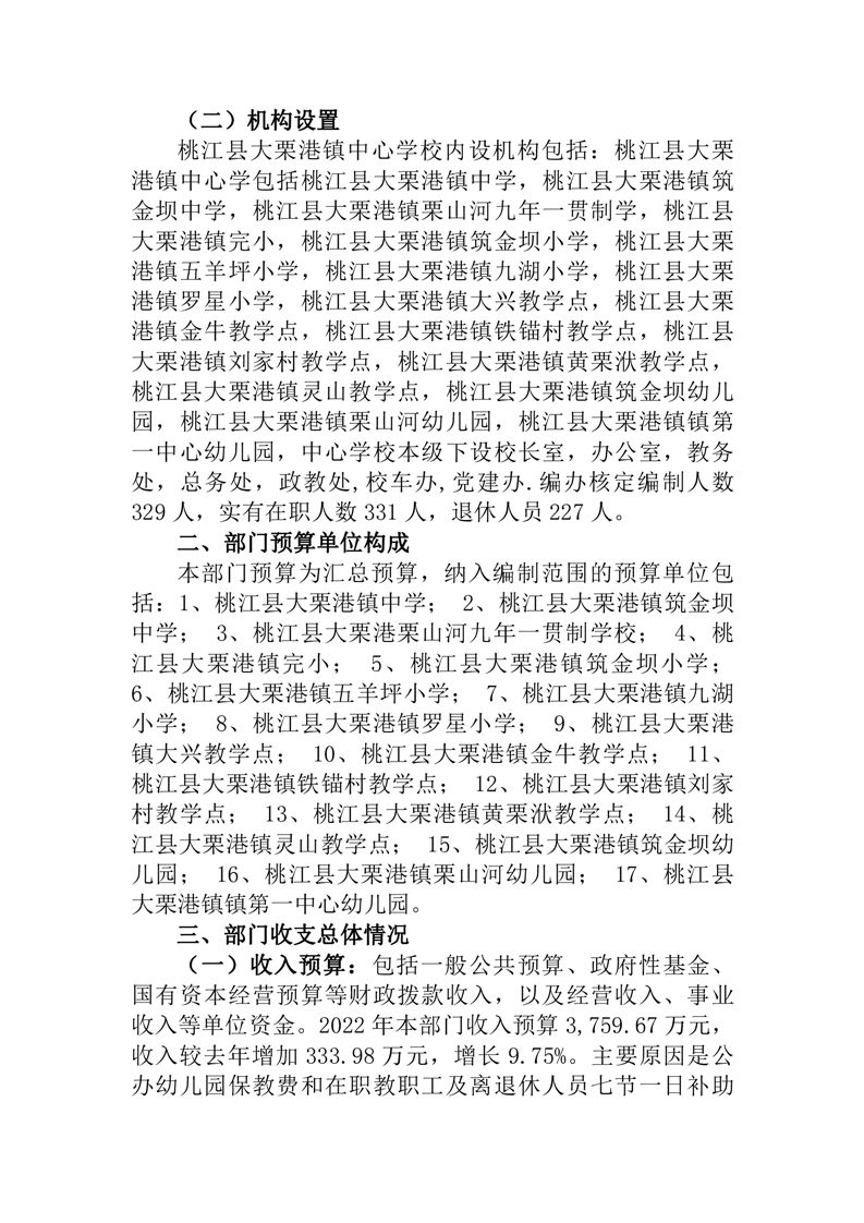 桃江县大栗港镇中心学校2022年部门预算公开说明