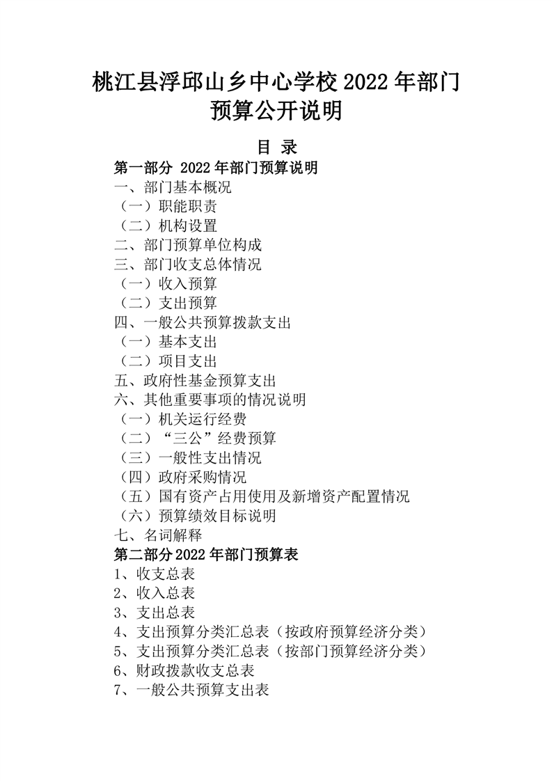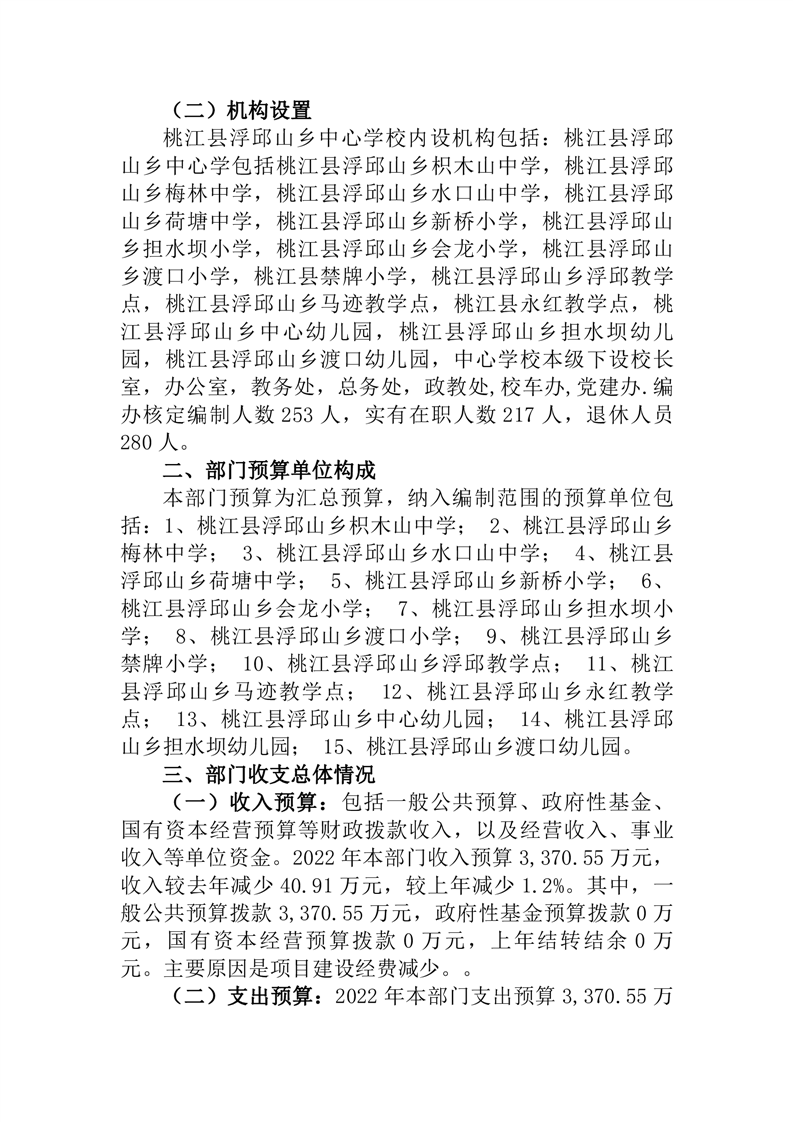 桃江县浮邱山乡中心学校2022年部门预算公开说明