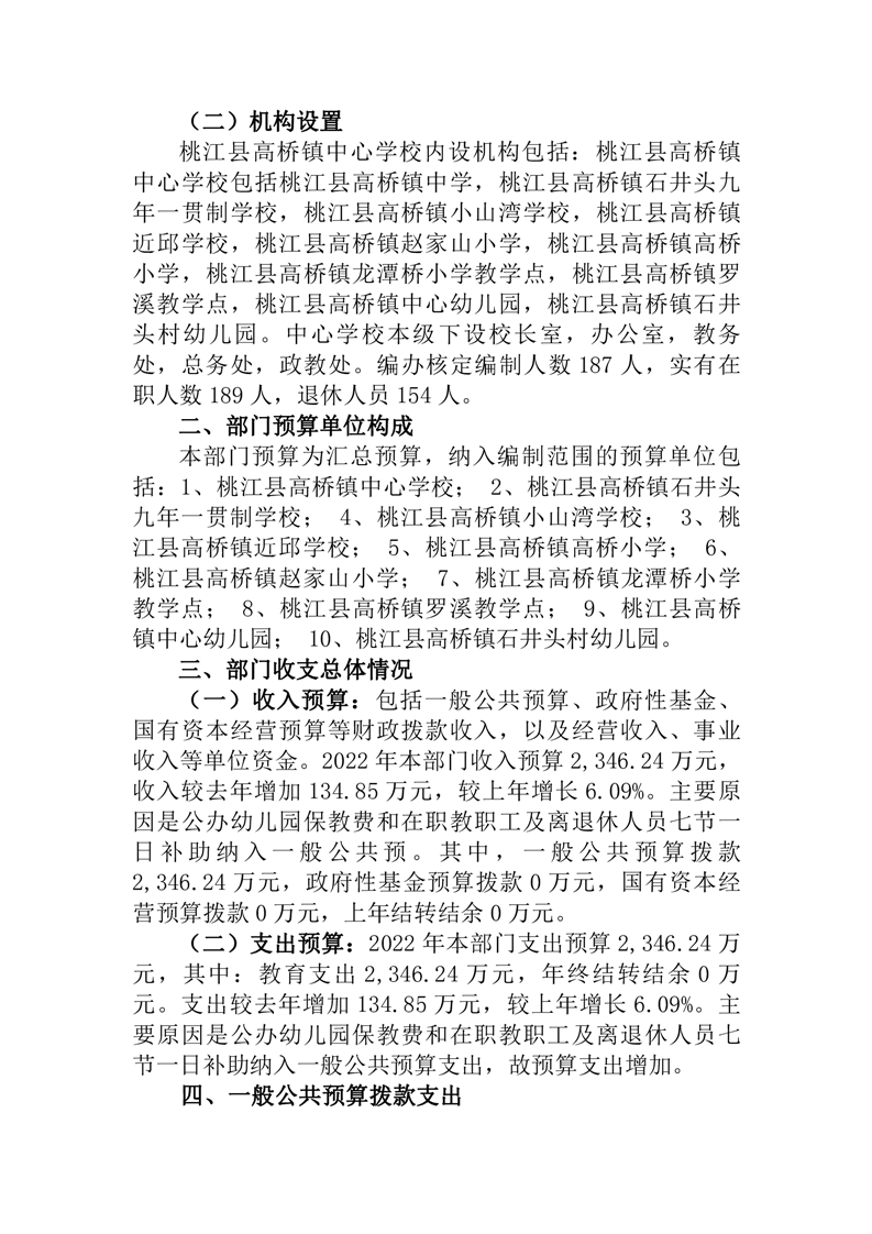 桃江县高桥镇中心学校2022年部门预算公开说明