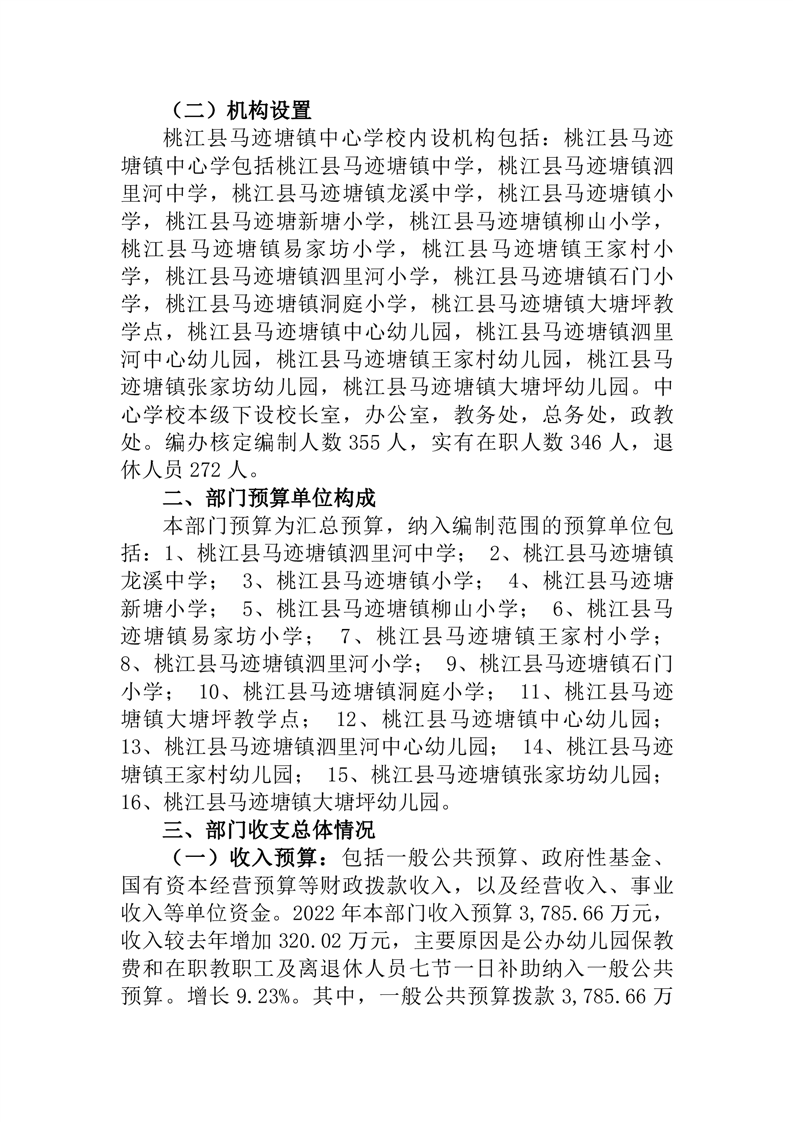 桃江县马迹塘镇中心学校2022年部门预算公开说明