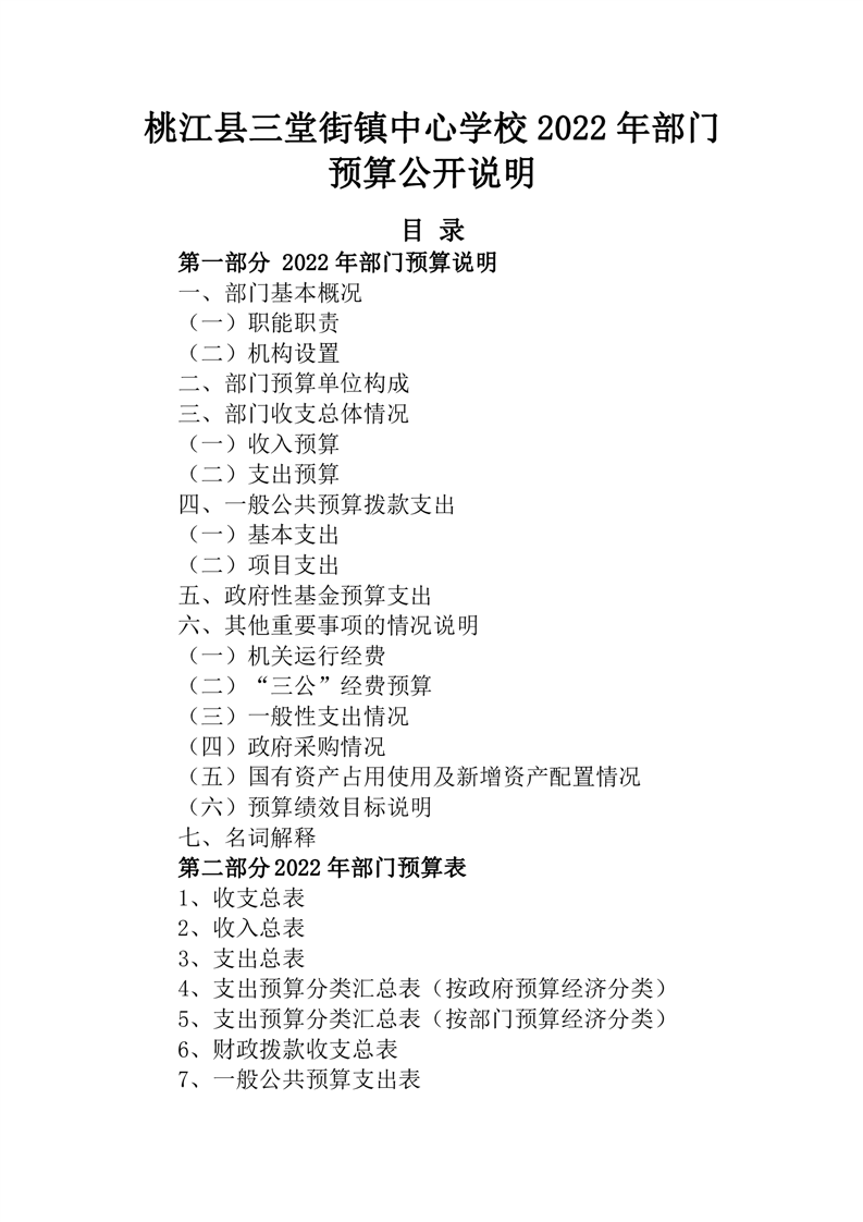 桃江县三堂街镇中心学校2022年部门预算公开说明