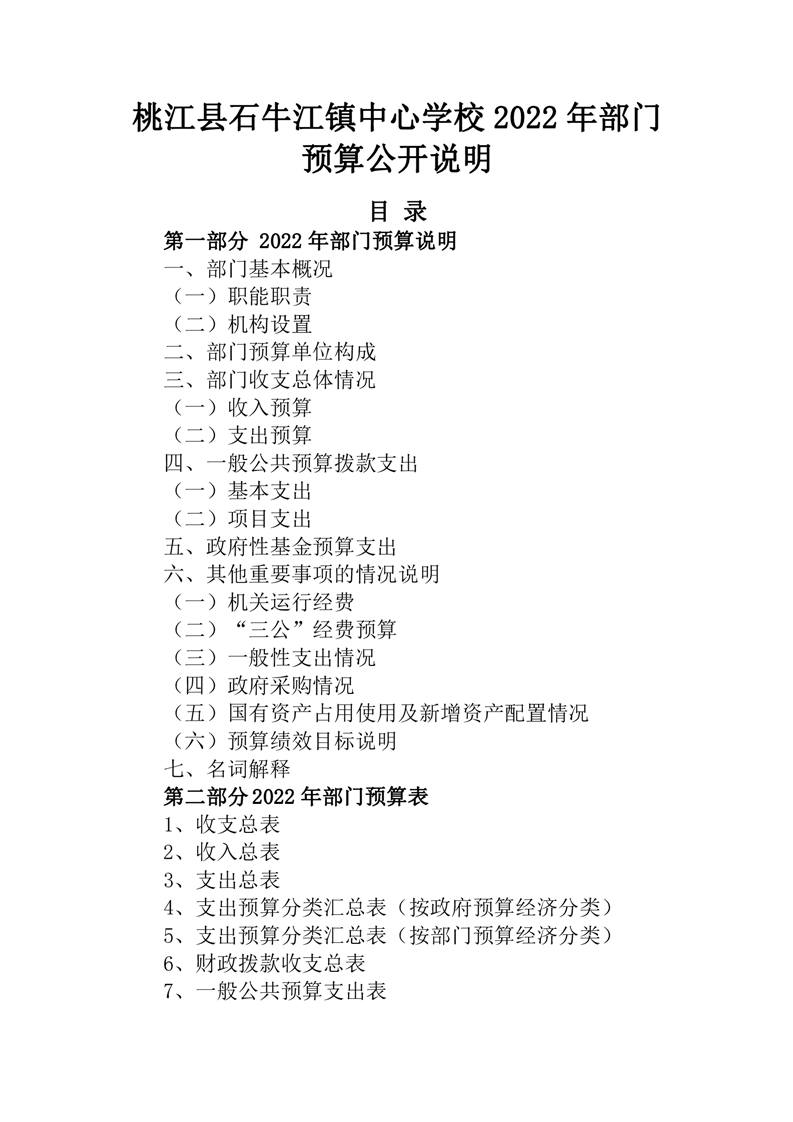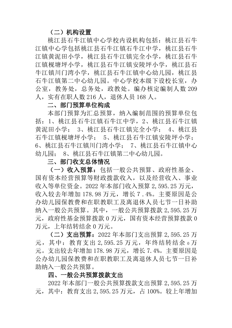 桃江县石牛江镇中心学校2022年部门预算公开说明