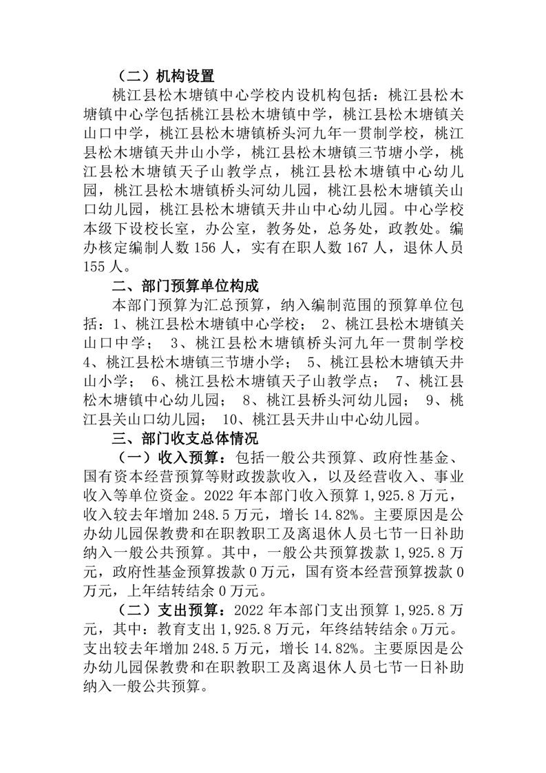 桃江县松木塘镇中心学校2022年部门预算公开说明