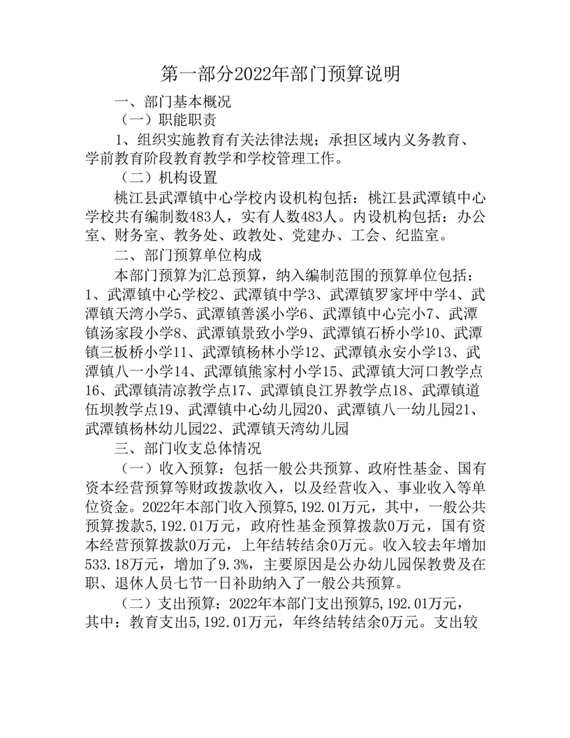 桃江县武潭镇中心学校2022年部门预算公开说明