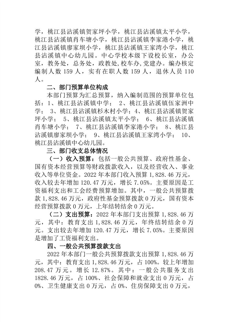 桃江县沾溪镇中心学校2022年部门预算公开说明