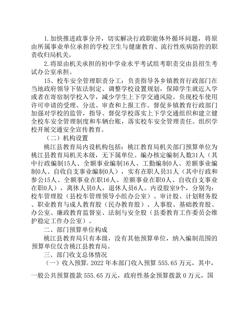 桃江县教育局机关2022年部门预算公开说明