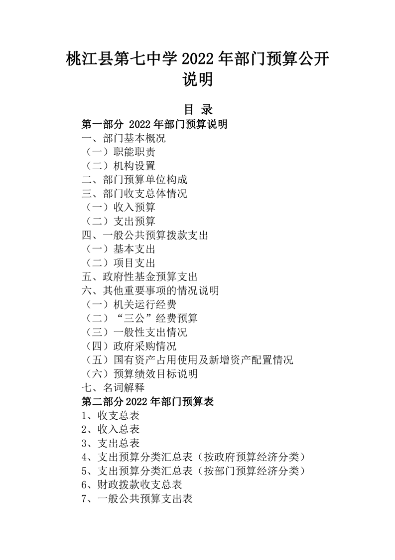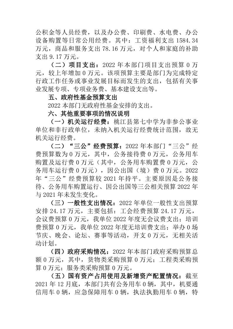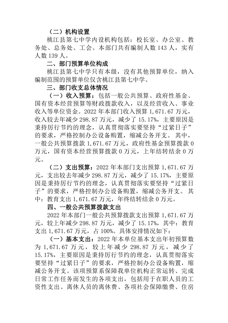 桃江县第七中学2022年部门预算公开说明