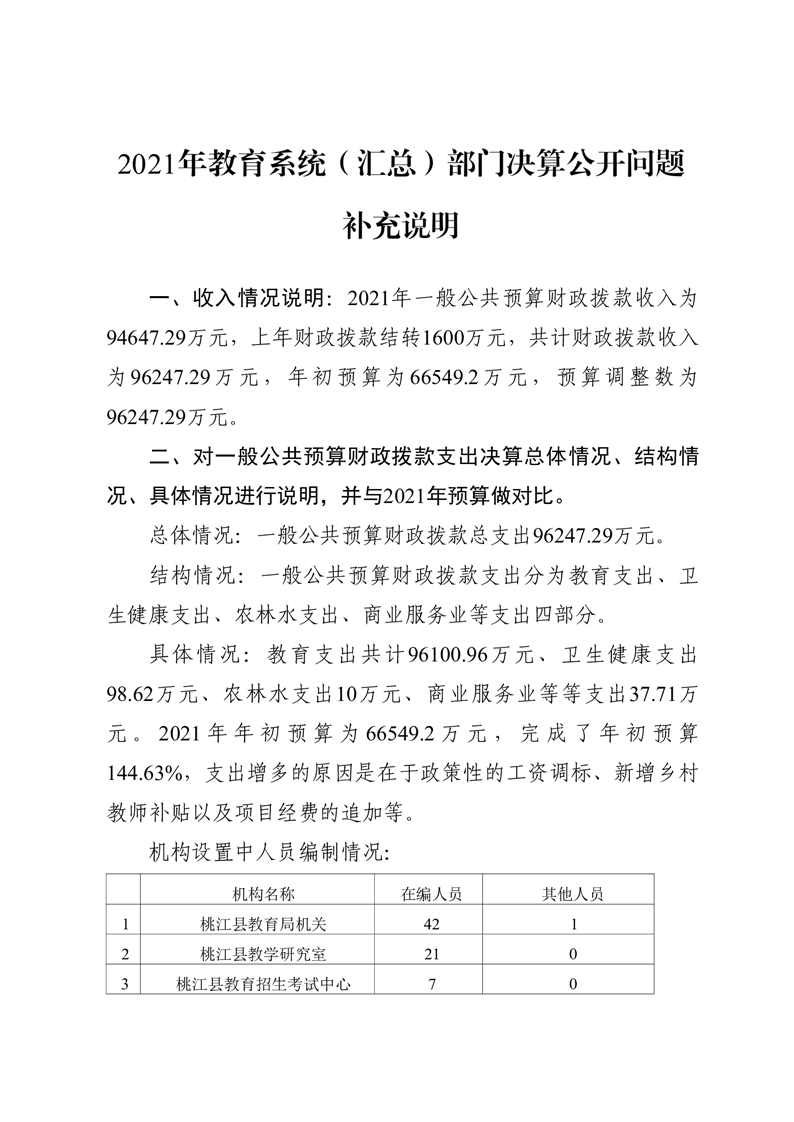 2021年度教育系统(汇总)部门决算公开问题补充说明